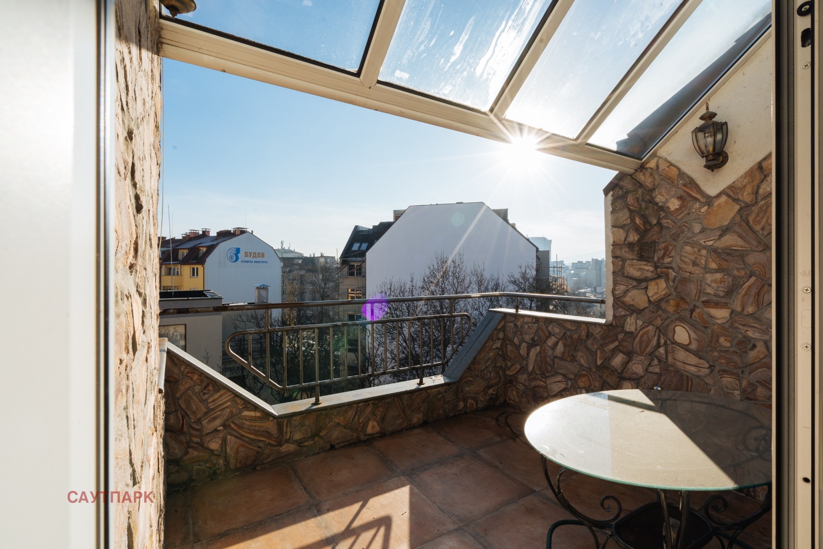 Агенция САУТПАРК продава ексклузивно просторен и слънчев МЕЗОНЕТ 184. 24 кв.м. ЗП с 4.822% идеални части от сградата, надземен ГАРАЖ (19.18 кв.м.) и мазе (11.53 кв.м), както и идеални части от земята. Имотът е с изложение изток-запад. МЕТРО станция Красно село е на 3 мин. пешеходно разстояние.