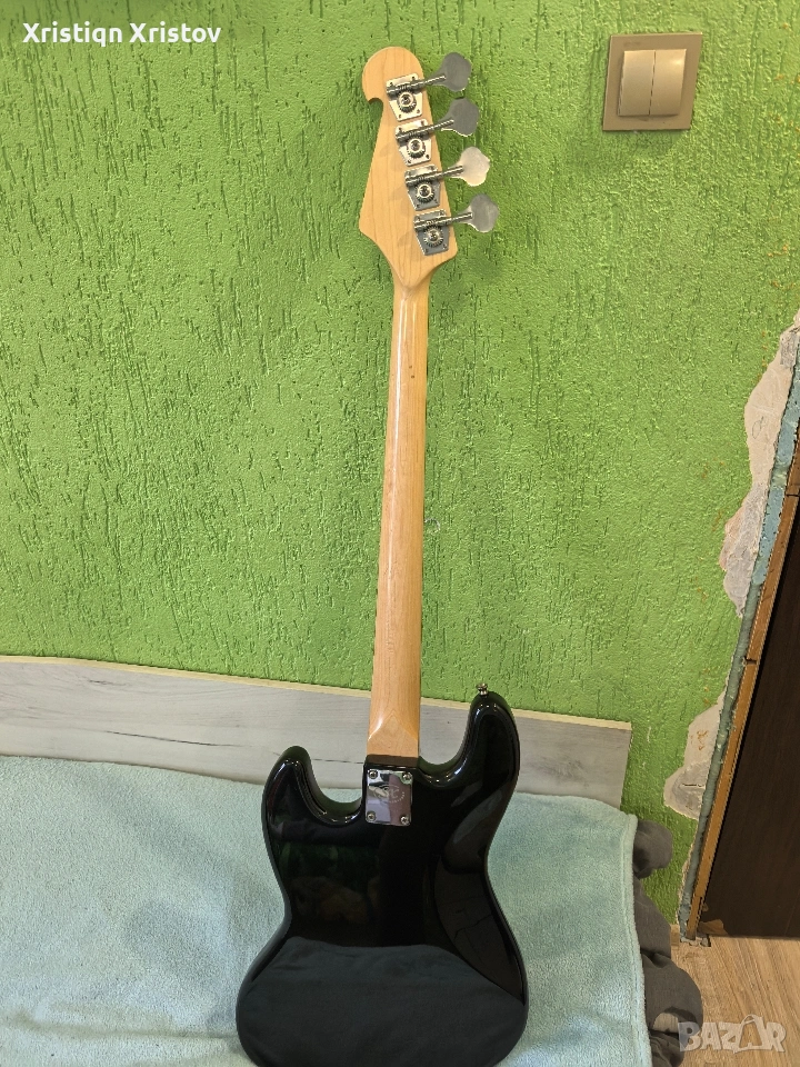 Продавам 4-струнна електрическа бас китара в много добро състояние. Китарата е с класически Jazz Bass стил – черно гланцово тяло с бял пикгард, много запазен външен вид и удобен гриф. Разполага с два адаптера, които осигуряват плътен и ясен звук, подходящ за различни стилове музика – рок, джаз, поп и др. Всичко по нея работи без проблем – електроника, потенциометри и ключове. Свири се лесно и е подходяща както за начинаещи, така и за напреднали. Характеристики: 4 струни 2 адаптера (Jazz Bass конфигурация) Контроли за звук и тон Удобен и бърз гриф Много добро състояние