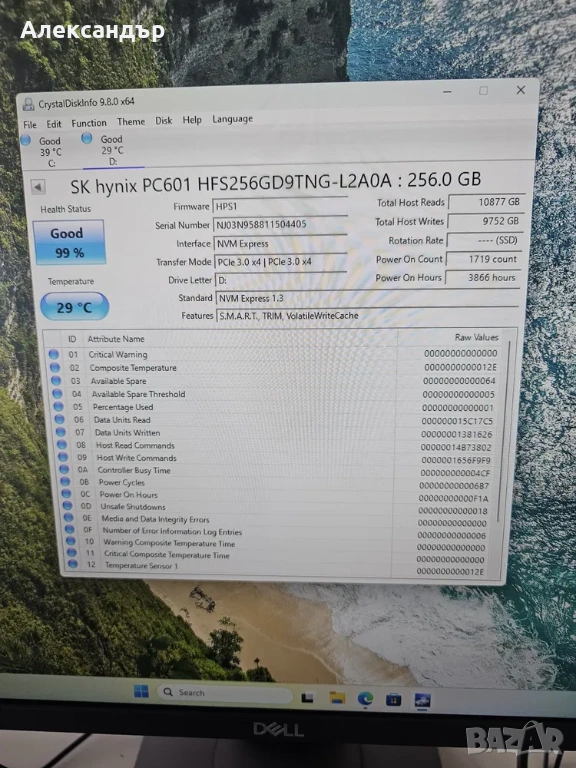 Дисково пространство: 256 GB NVMe PCIe M.2 SSD