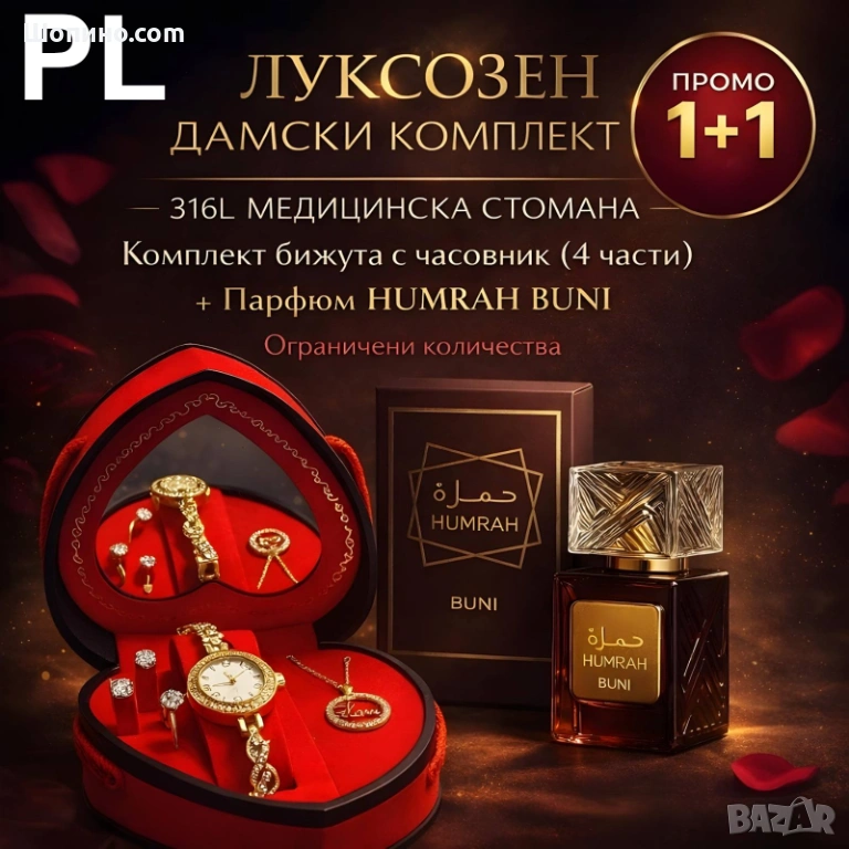 Дамски комплект бижута №11 (4 части) + Парфюм Humrah Buni 100 ml → Обява 53936256