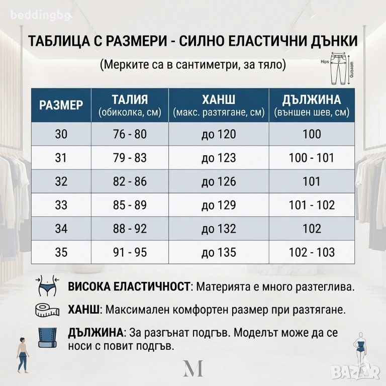 Материя: Висококачествен памук с еластан (73% памук, 25% полиестер, 2% еластан).