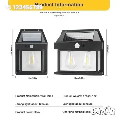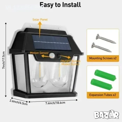 Двойна соларна лампа Solar за стена със сензор и 3 режима