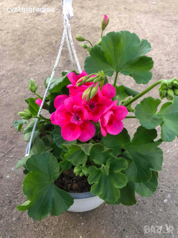Pelargonium ‘Calliope’ розово е каскадно мушкато с нежни розови цветове и изключително обилен цъфтеж. Растението е вече засадено в кошница и оформено като гъста, спускаща се цветна каскада, която създава елегантен и свеж ефект. Идеално решение за бързо озеленяване на балкони, тераси и входове без допълнителни усилия.