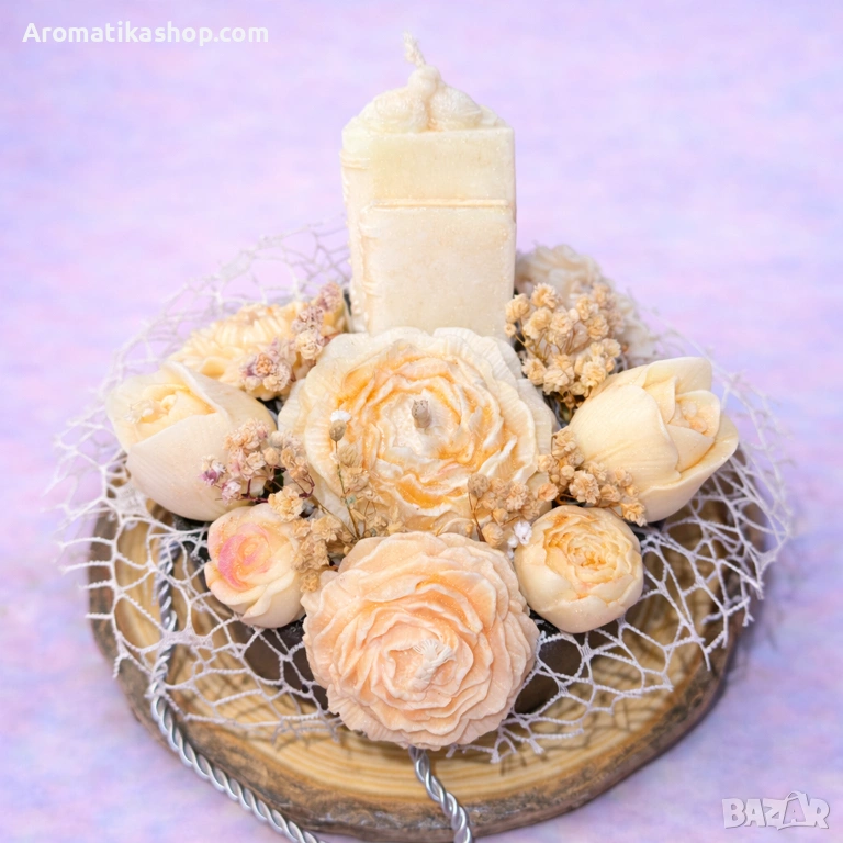 Букетът е декоративен, но може да бъде използван и като свещ.