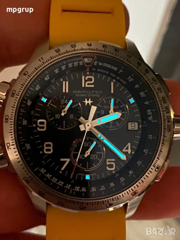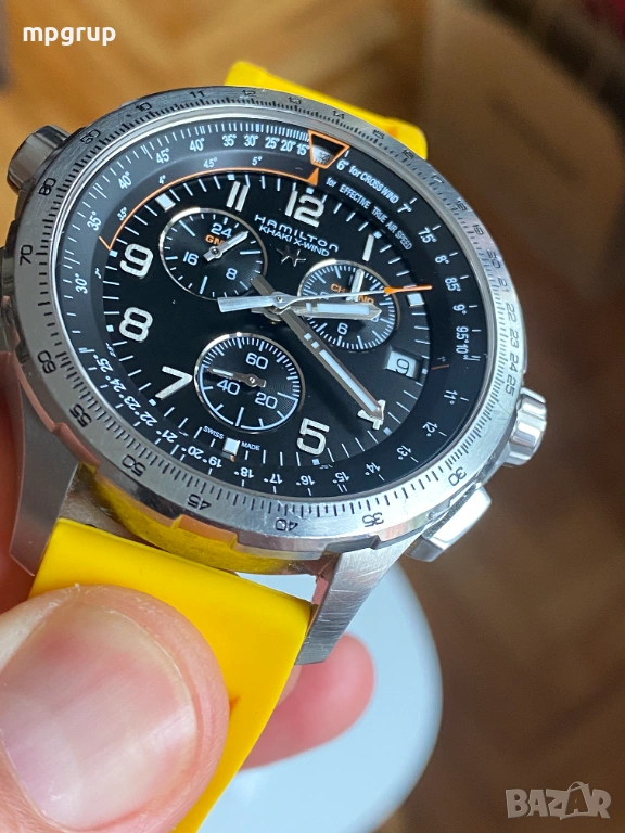 Khaki Aviation X-Wind Chrono Quartz е истински израз на авантюристичния дух и точността, която изисква авиацията. Със своите 46 мм корпус от неръждаема стомана, този часовник обединява хронометър, безел за авиационни изчисления и допълнителна функция за втора часова зона, предлагайки всичко необходимо за съвременните пътешественици.