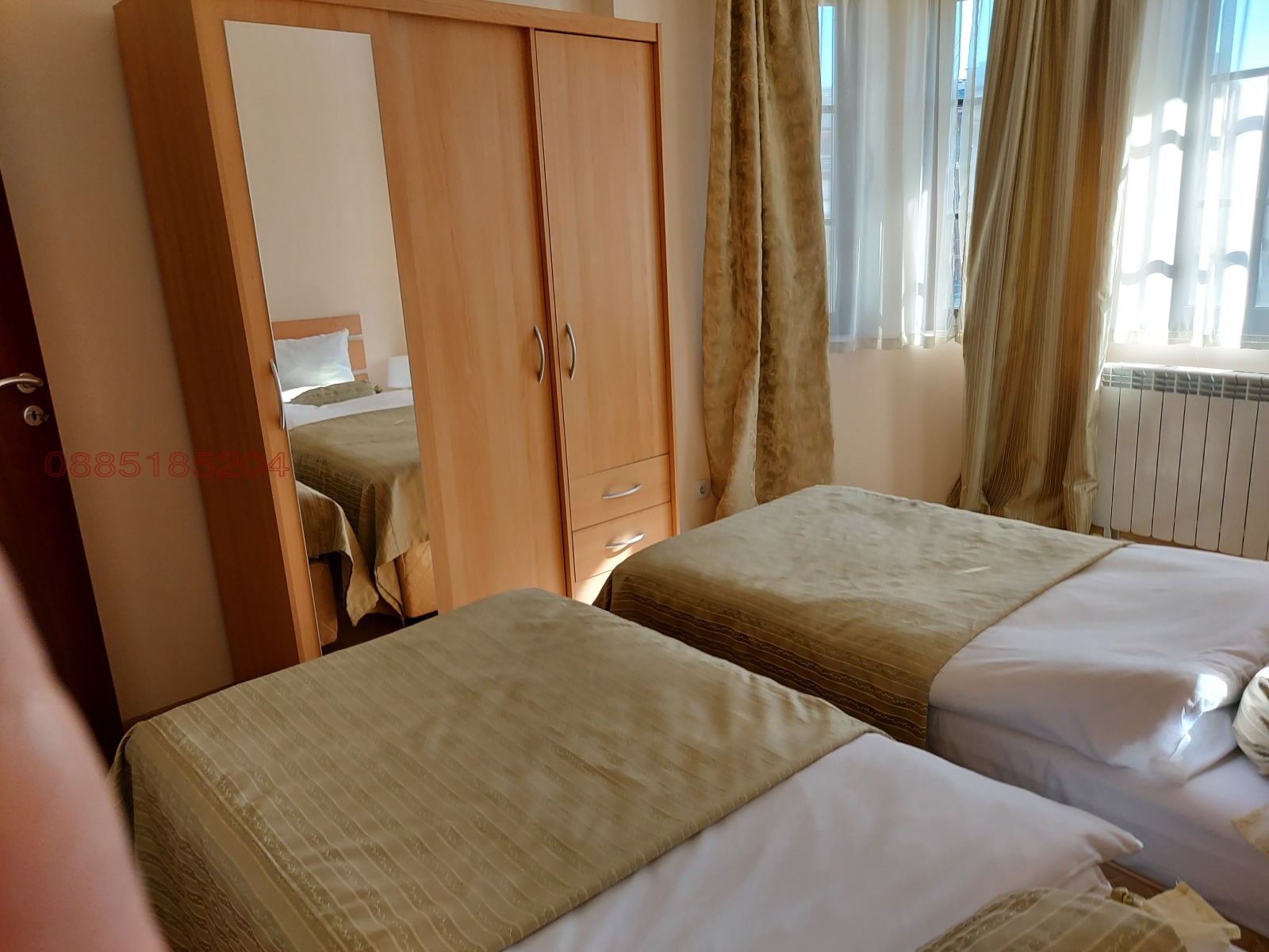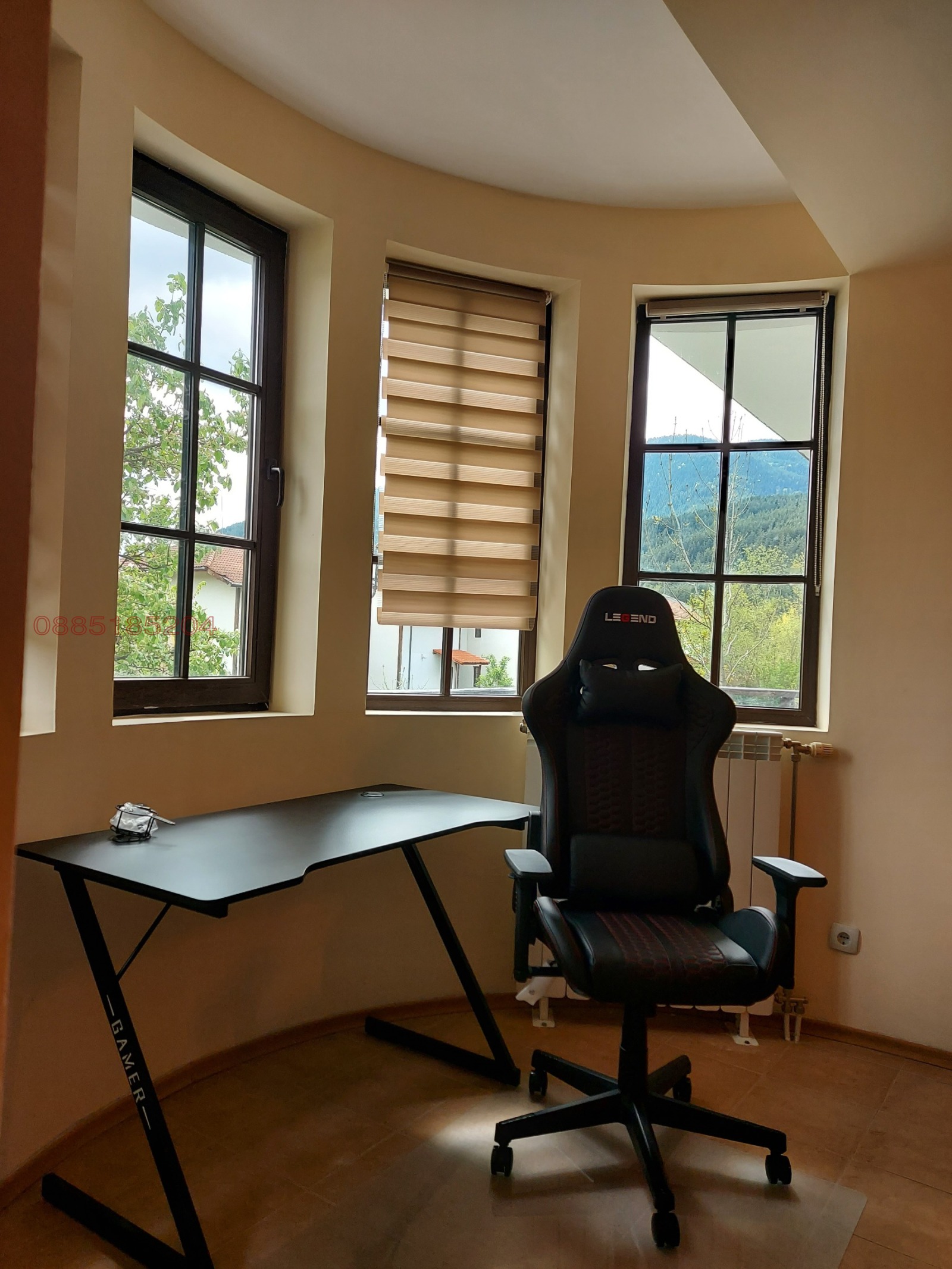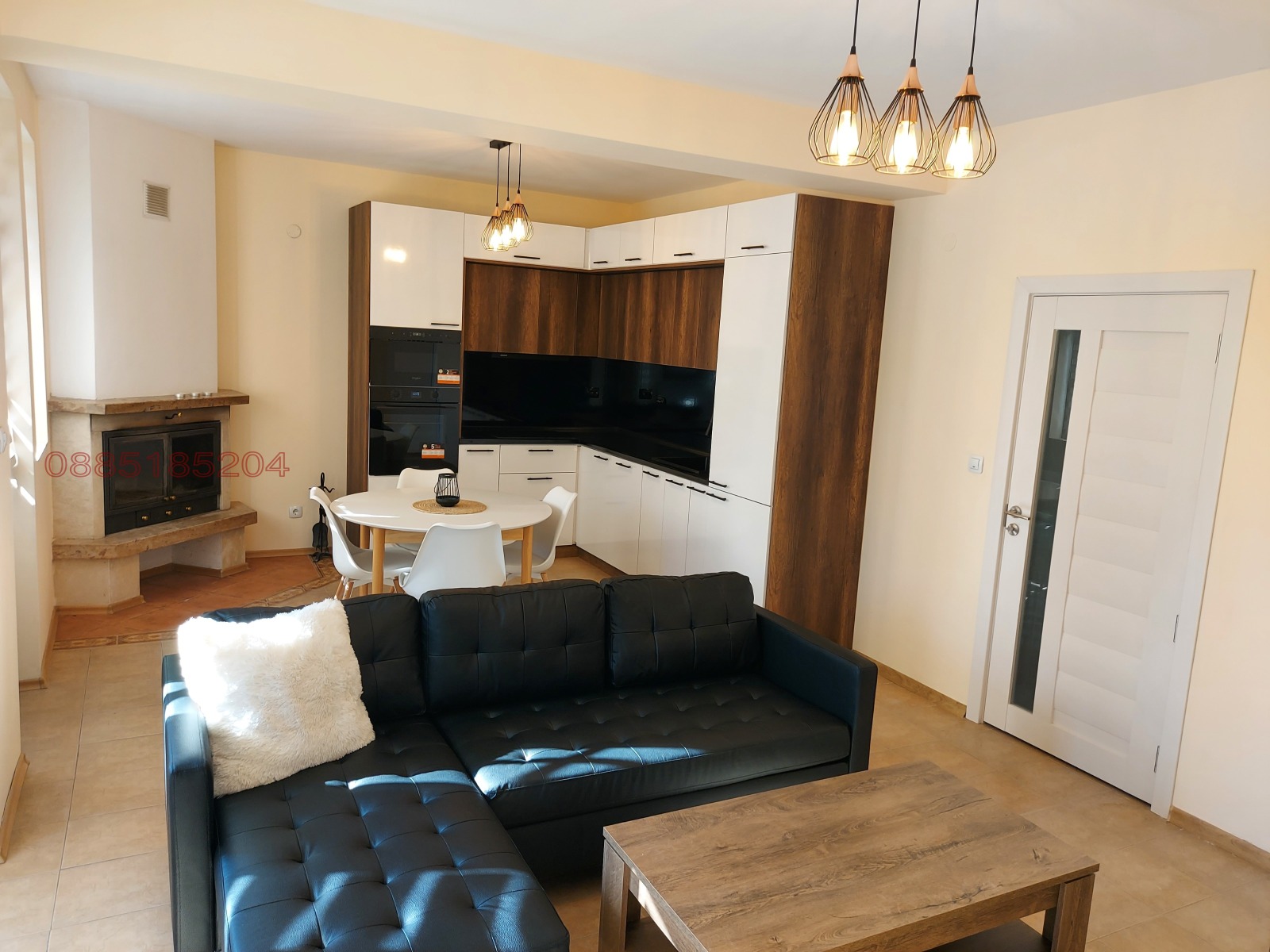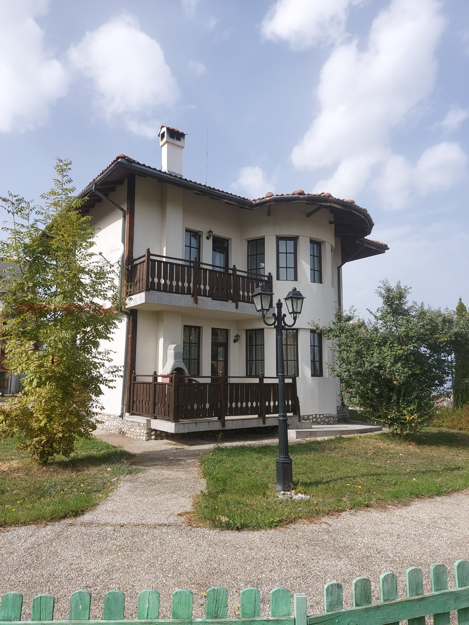 Разпределение: просторна дневна с трапезарна част и голяма кухня, 2 спални, 3 бани с тоалетна и 2 тераси. Долна тераса с вградено барбекю. Цялото оборудване в кухнята е напълно ново, както и мебели. Имотът е обзаведен и оборудван с всичко необходимо за живеене или отдаване под наем. Отопление на ток и фукционираща камина. Отделни партиди за ток и вода!