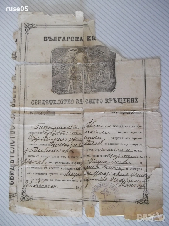 Свидѣтелство за свето кръщение - № 68, снимка 1 - Колекции - 53936695 Свидѣтелство за свето кръщение - № 68, снимка 2 - Колекции - 53936695 1/2