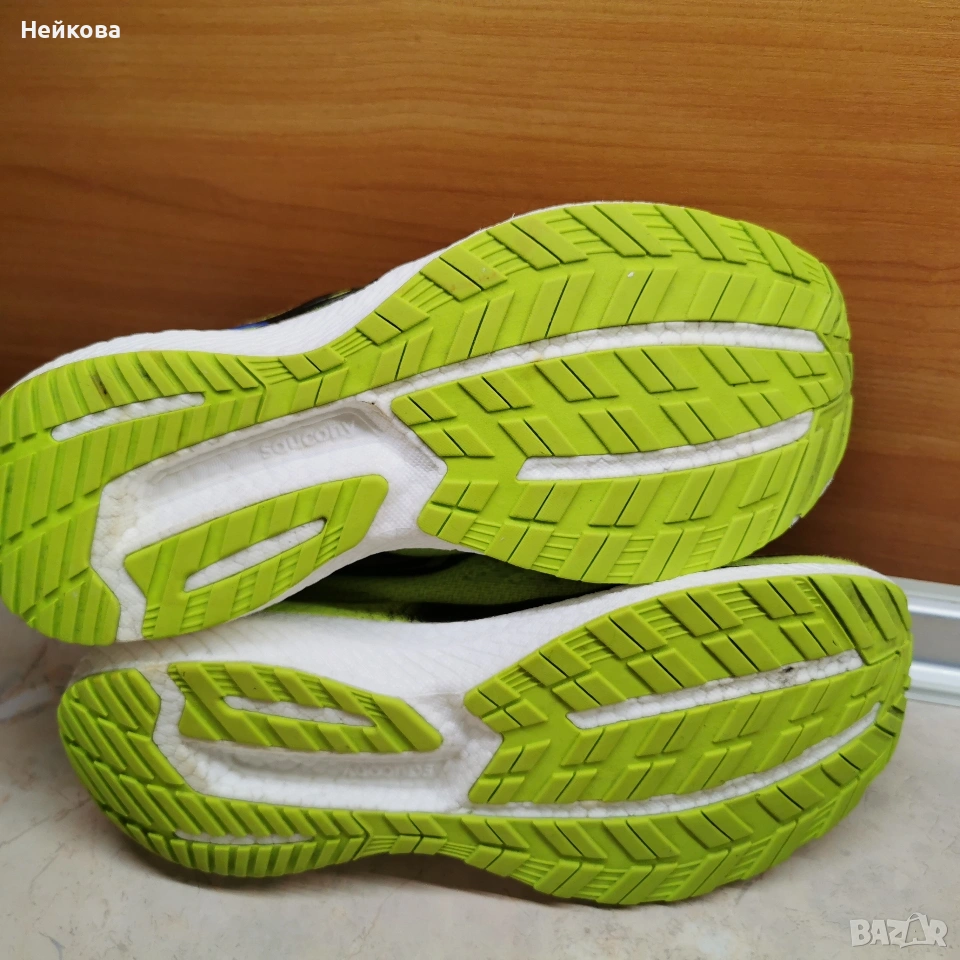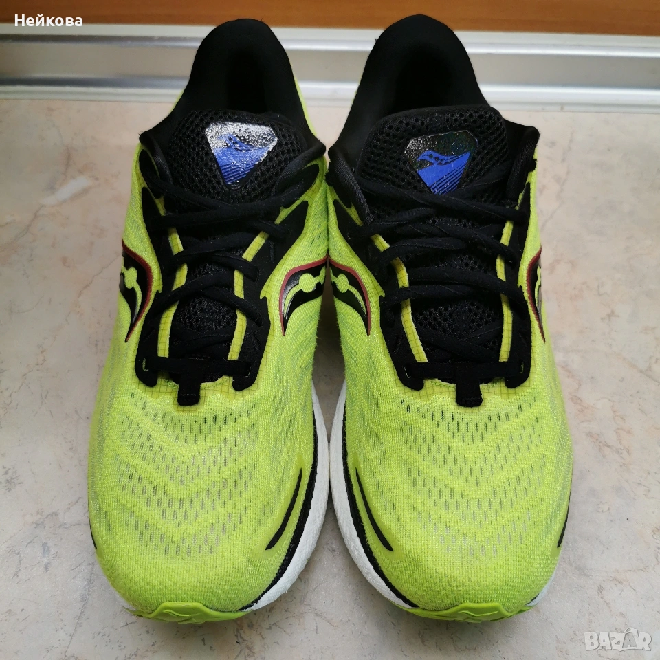 Маратонките на снимките са модел Saucony Triumph 19 в разцветка "Acid/Blue Raz"