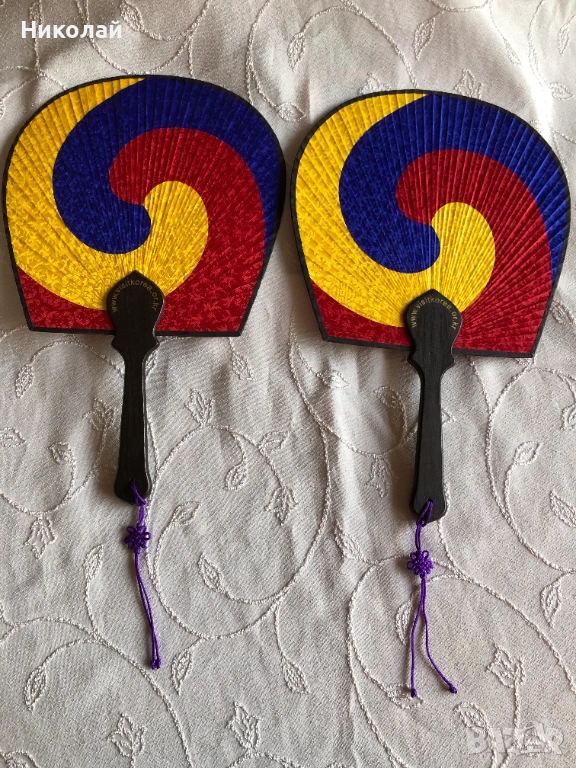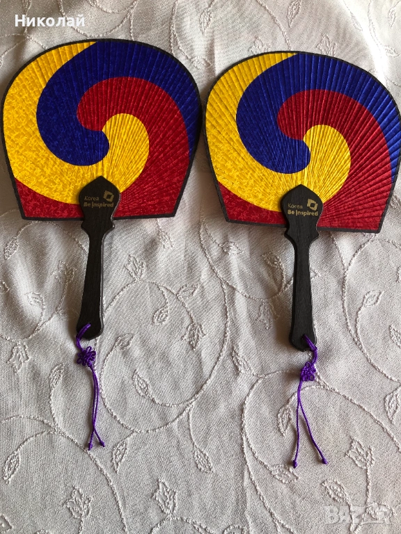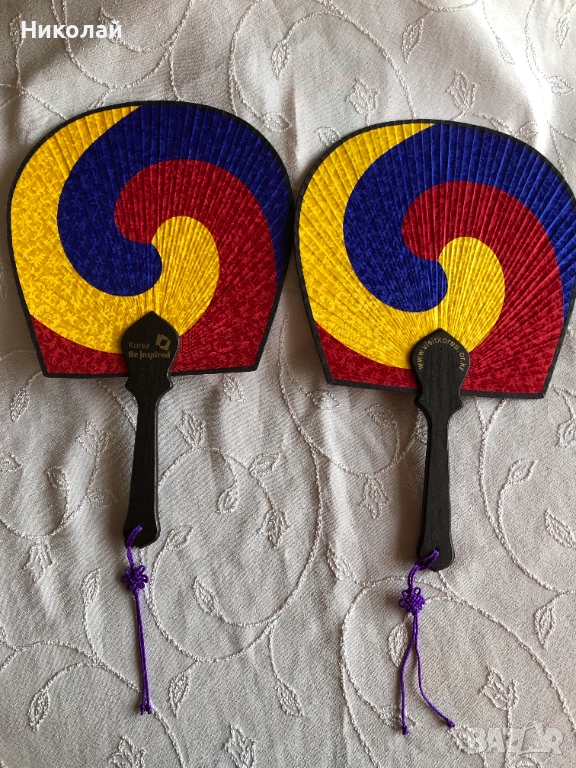 Продавам два броя оригинални корейски ветрила Taegeukseon. Размери 35 височина на ветрилото и дръжката без пискюла и ширина 23 см.