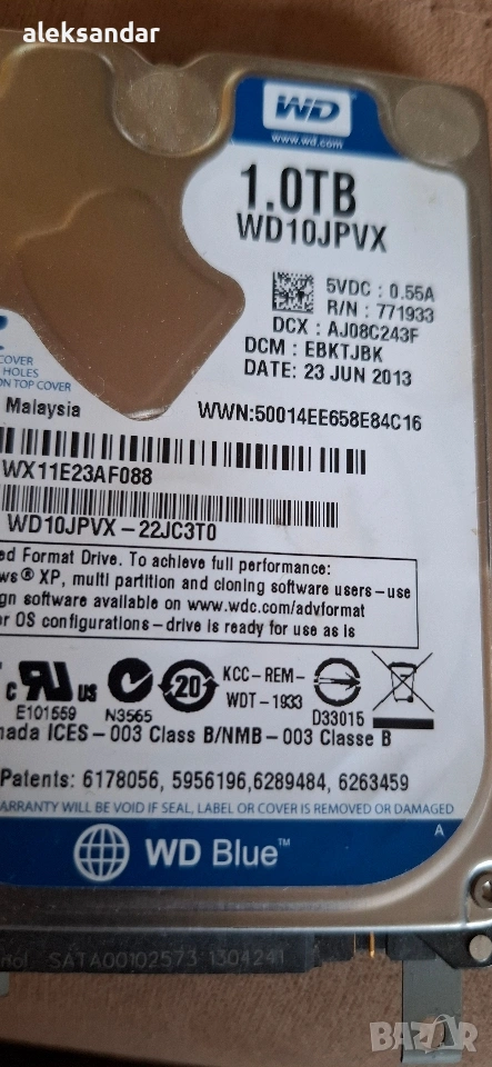 2.5.WD Blue 1TB.на 109 дни ползван. → Обява 53936834