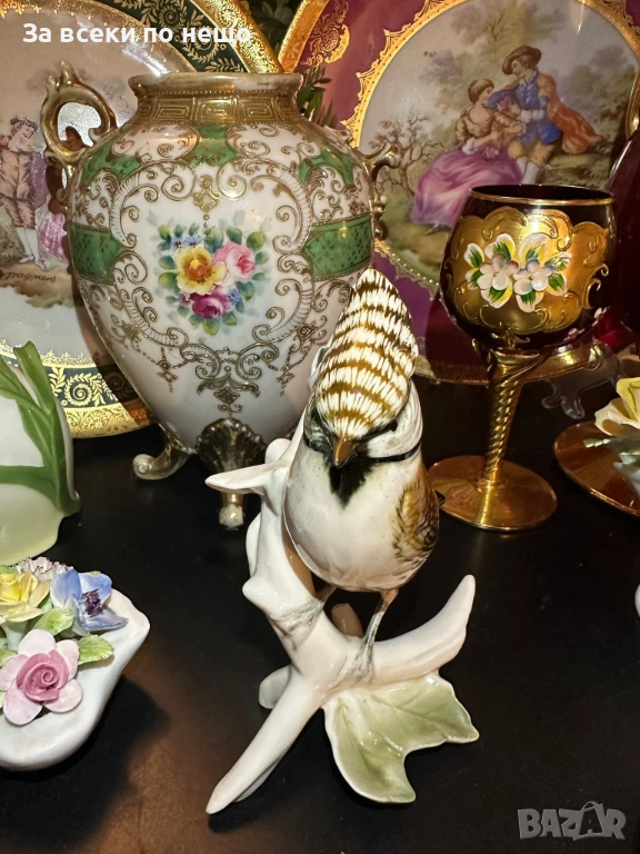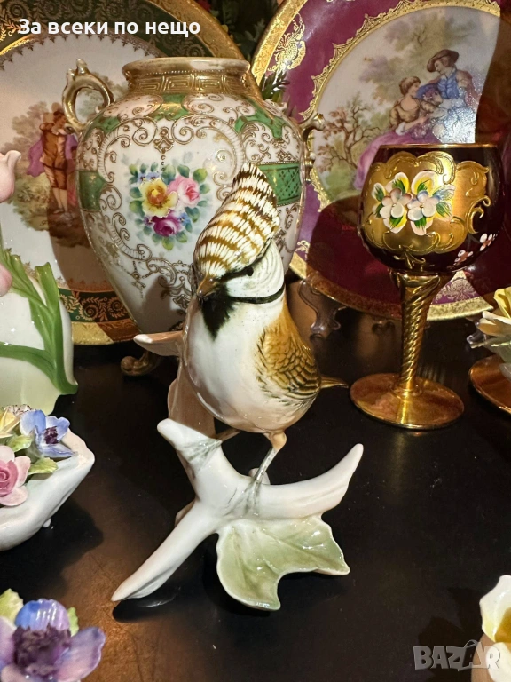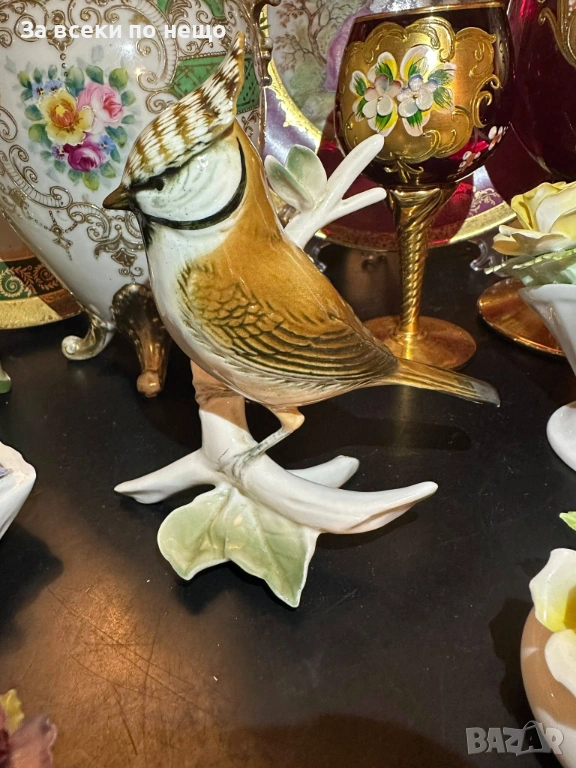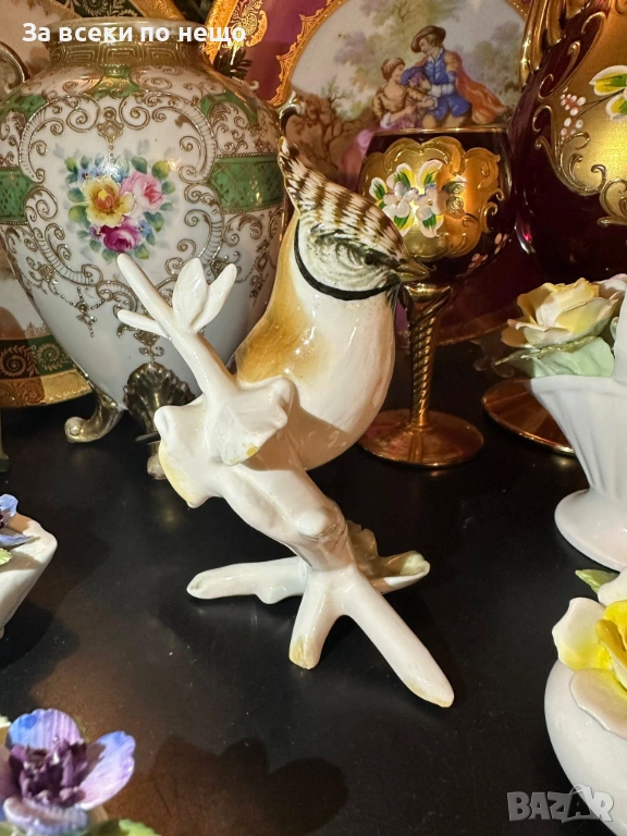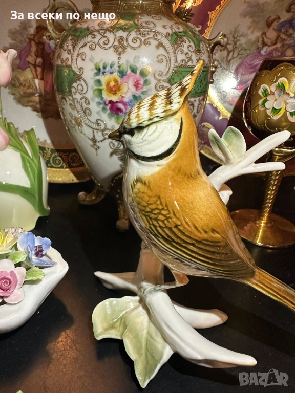 - “Гребенат синигер” - великолепна птица, изящно изпълнение с гланциран порцелан и деликатни, естествени краски, изумителна красота (прелест) на немското порцеланово изкуство, размери 14/12 см, отлично качество и изработка. Уникална визия и чар, богатство за всяка колекция или декор.