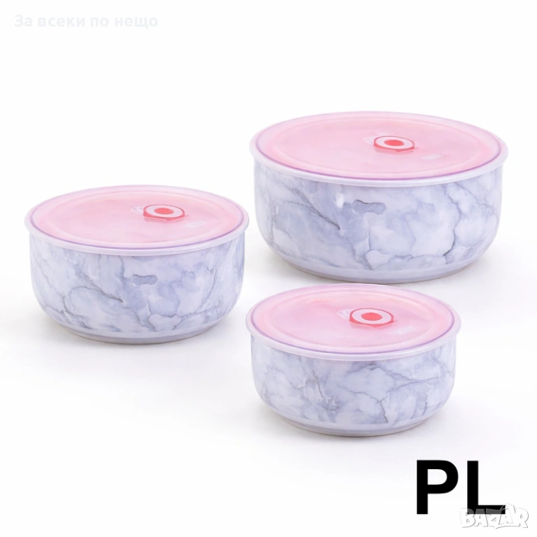Стилен и практичен комплект от три порцеланови купи в различни размери, подходящи за сервиране, съхранение и поднасяне на храна. Купите са изработени от качествен порцелан и са снабдени с капаци, които спомагат за по-добро запазване на свежестта на храната.