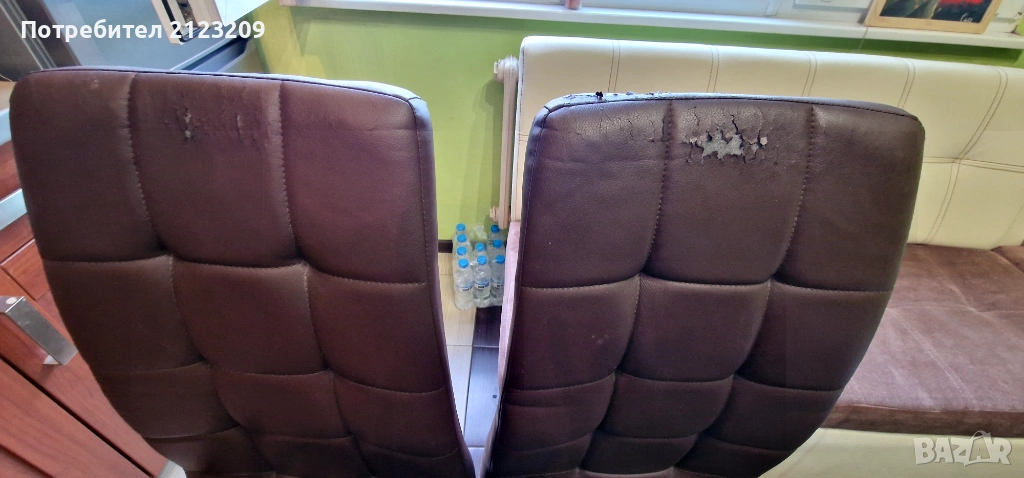 Двата стола са в отлично състояние, Другите два имат лека забележка, като е показано на едната снимка. Лично предаване за Велико Търново. Цена за комплект с масата - 210 евро.