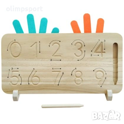 Дървена образователна играчка за броене с пръсти, включваща числови блокчета, обучителни карти, дървена дъска и филцови длани. Подпомага усвояването на основни математически умения, развива логическо мислене, координация и фина моторика. Образователната дървена играчка за смятане включва 13 квадратни дървени блокчета с числа, 10 двустранни обучителни карти, стабилна дървена дъска и 2 меки филцови длани. Изработена е от безопасна и устойчива дървесина. Играчката за броене с пръсти е подходяща за: домашно обучение, детски градини, подготовка за училище, допълнителни занимания и игри на открито. Размерът е съобразен с детски ръце и е удобен за носене при пътуване. За деца над 3 години. Размер - 30х15.5х3 см. Тегло – 450 г.