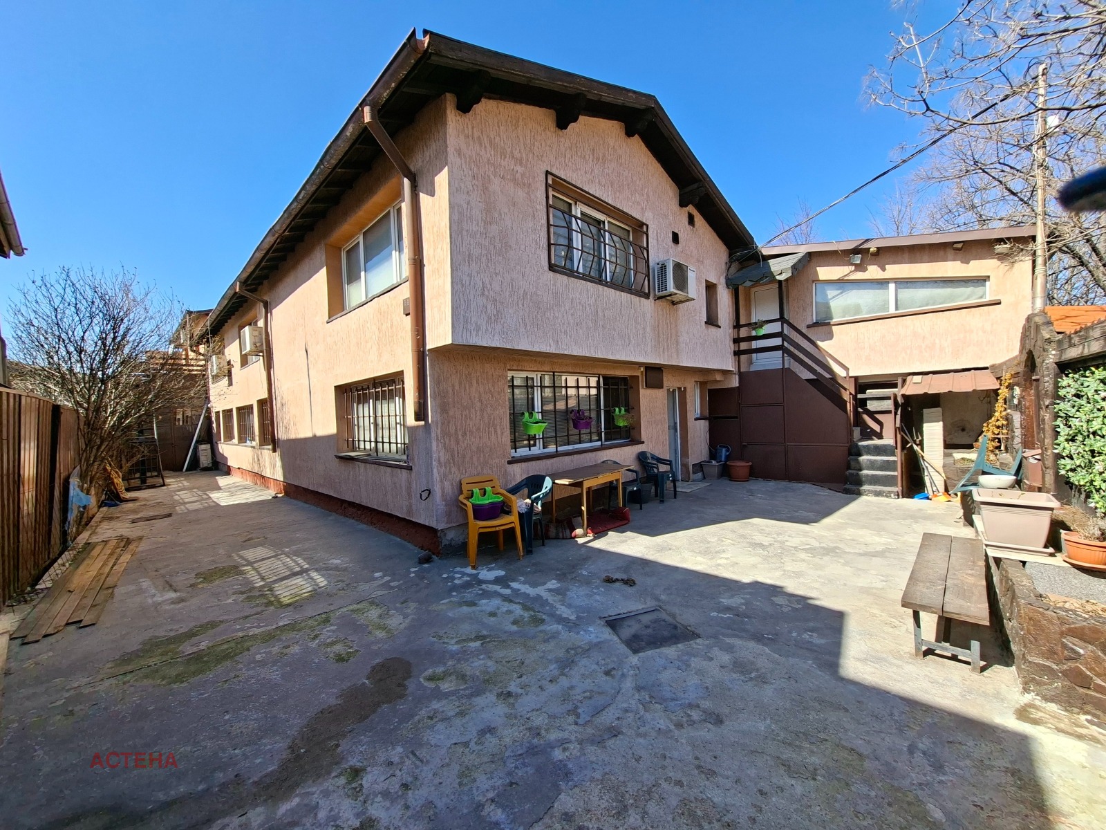 Солидна триетажна монолитна тухлена постройка, построена като промишлена сграда с РЗП от около 660 кв.м. Строена през 90-те години. Застроената площ е 340 кв.м, разчупена е на три различни нива. В момента част от сградата се ползва като къща, затова част от първия етаж и иззяло вторият етаж са с преградни стени, за да се оформят големи стаи, другата част се ползва изцяло за промишлени цели. Дворът е 870 кв.м. Намира се близо до ул. Летоструй и до бъдещата спирка на метрото. Р района се позволява ниско строителство до 10 метра. За контакти: 0879478052 - Марияна Попова