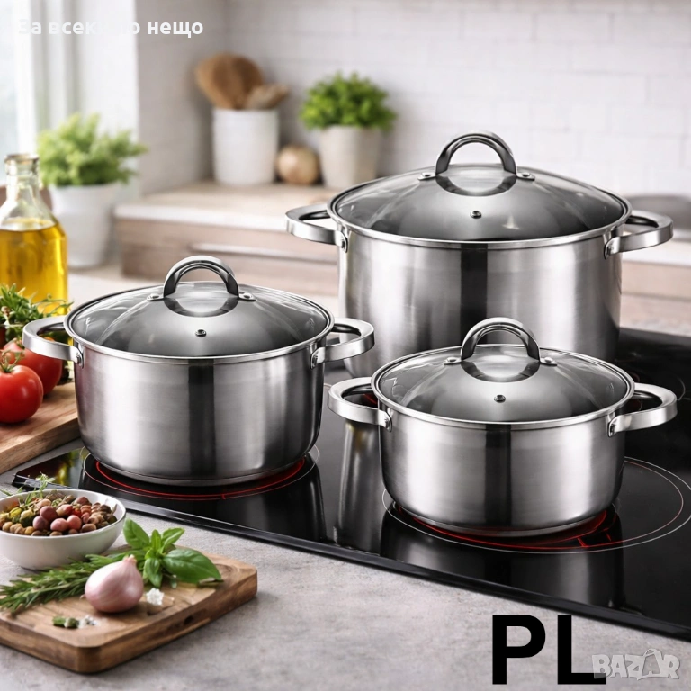 Комплект: 3 тенджери + 3 капака (общо 6 части)