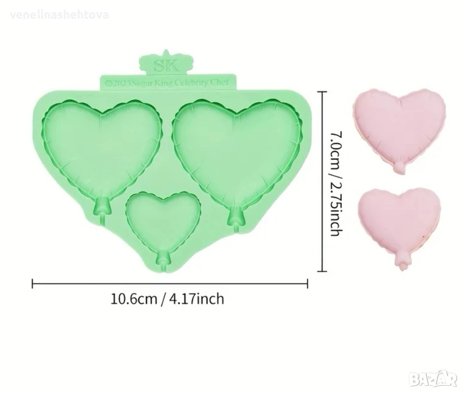 Три сърца балон балони силиконов молд за смола глина близалки фондан за декорация на торта → Обява 53937560