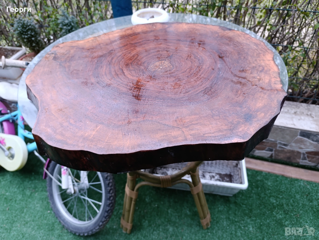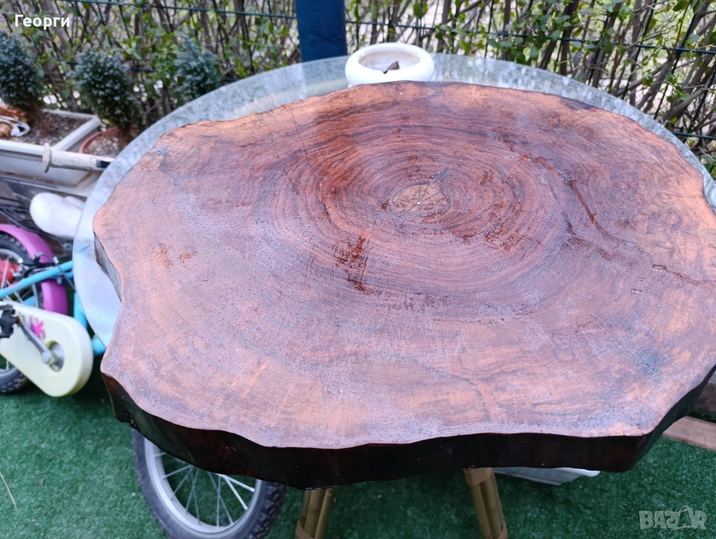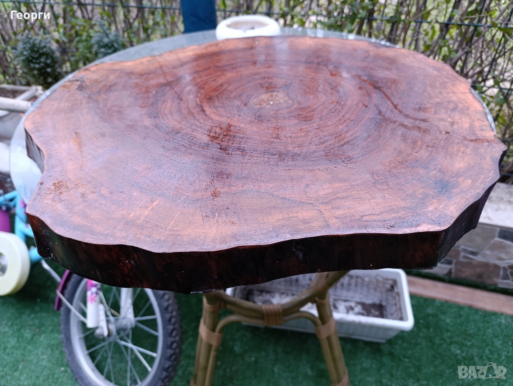 Подходящи за плот за маса или за плот за мивка размера е 5 см дебелина диаметър от 50 до 60 см материала е орех и е сух