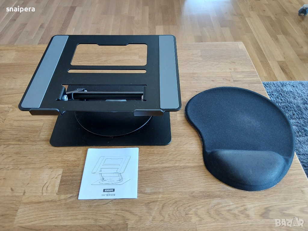 Стойката е практически нова, взех я, за да сложа един лаптоп, но вече е продаден :) Получавате и килимче за мишка (ако го искате)