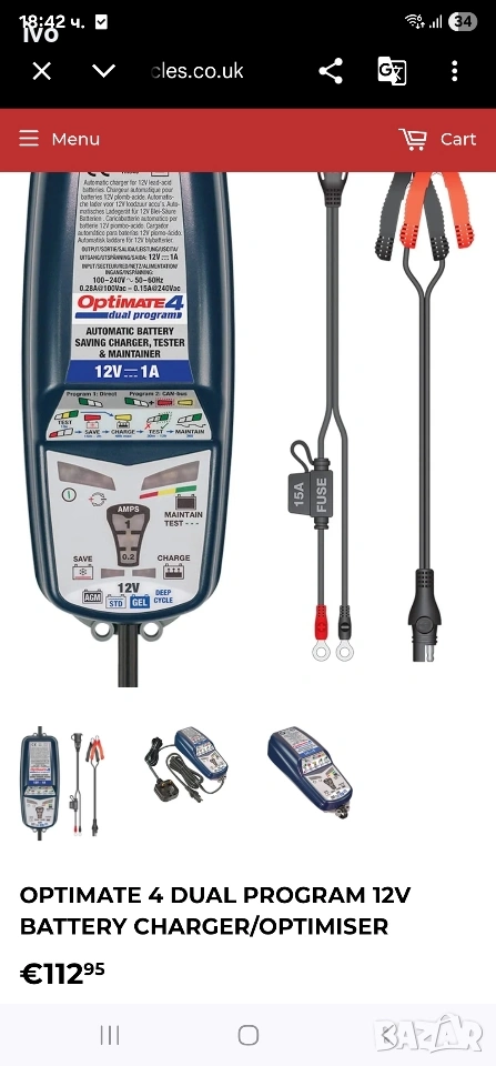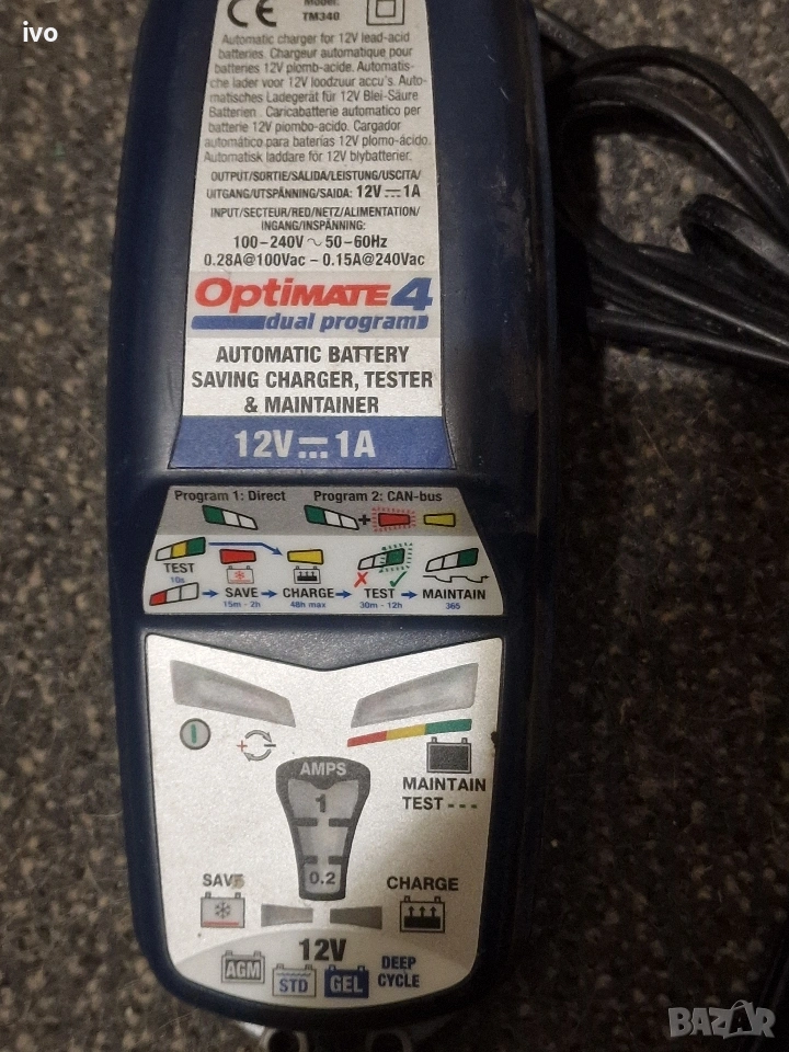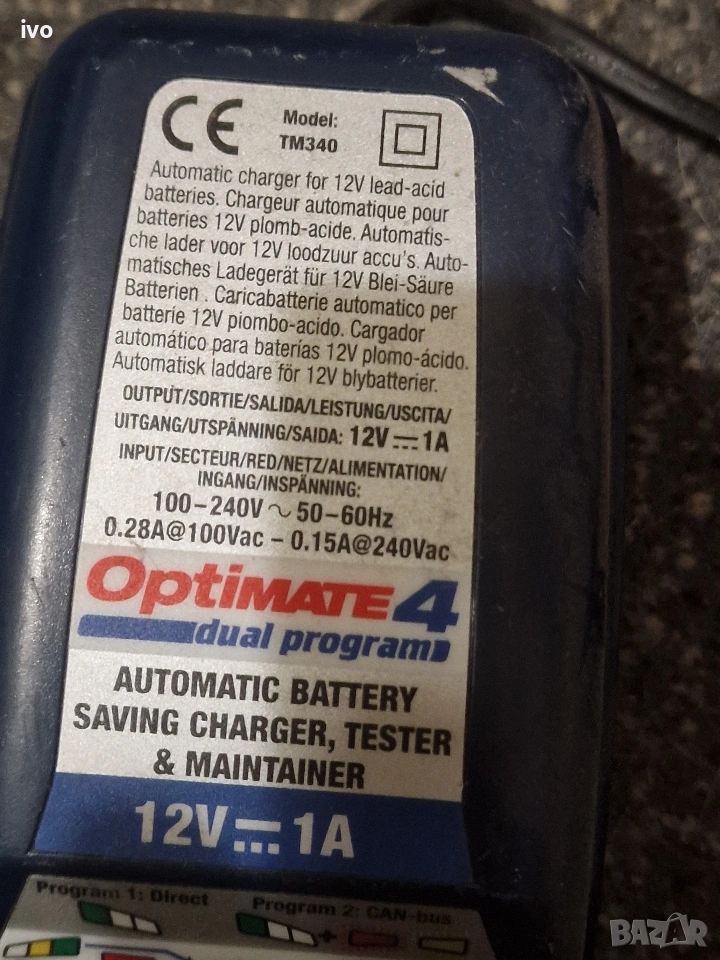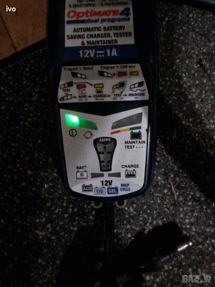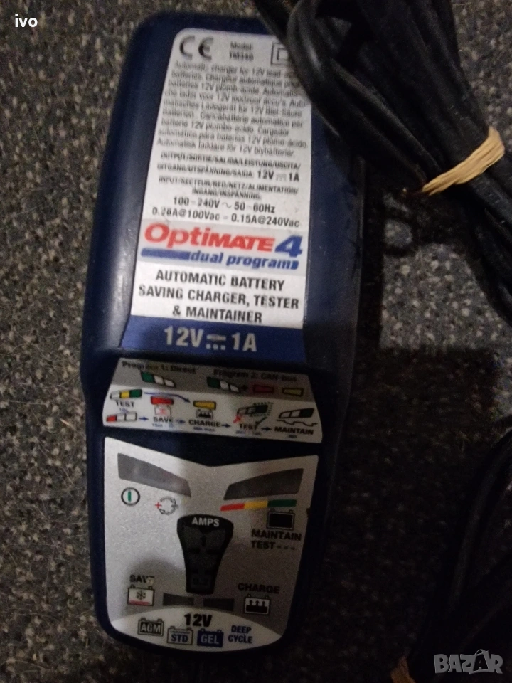 Усъвършенствано 12 V зарядно устройство / поддръжка OptiMate 4, най-добрият инструмент "всичко-в-едно" за грижа за 12 V батерия у дома, сега с двойна програма, която диагностицира, възстановява, зарежда, тества и оптимално поддържа батерията ви автоматично Заредете батерията директно или изберете програмата, която да се зарежда през 12 V порта на вашия монтиран CANbus мотор С автоматичното активиране без ключ OptiMate 4 Dual Program ще зарежда и поддържа батерията автоматично, докато не бъде изключена Включва възстановяване на импулсите за ниско напрежение за още по-ефективно възстановяване на лошо пренебрегнати, сулфатирани батерии; удобен за потребителя тест на батерията при свързване; хлъзгав корпус с вградени монтажни уши и подобрена енергийна ефективност Удължавайки живота на батерията с до 400%, OptiMate 4 Dual Program ще запази батерията ви безопасна и готова за работа в продължение на месеци Включва два разглобяеми, взаимозаменяеми конектора на батерията: конектор с капси за постоянна връзка и щипки за батерии за зареждане на стенд