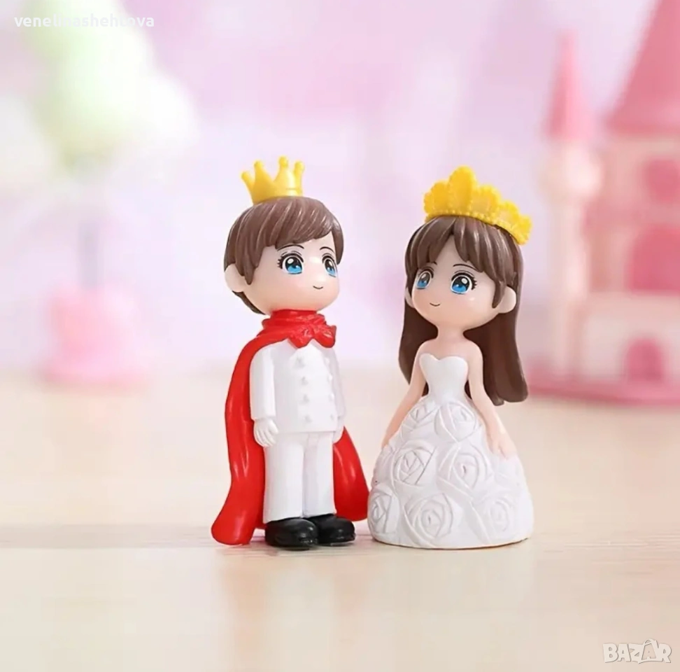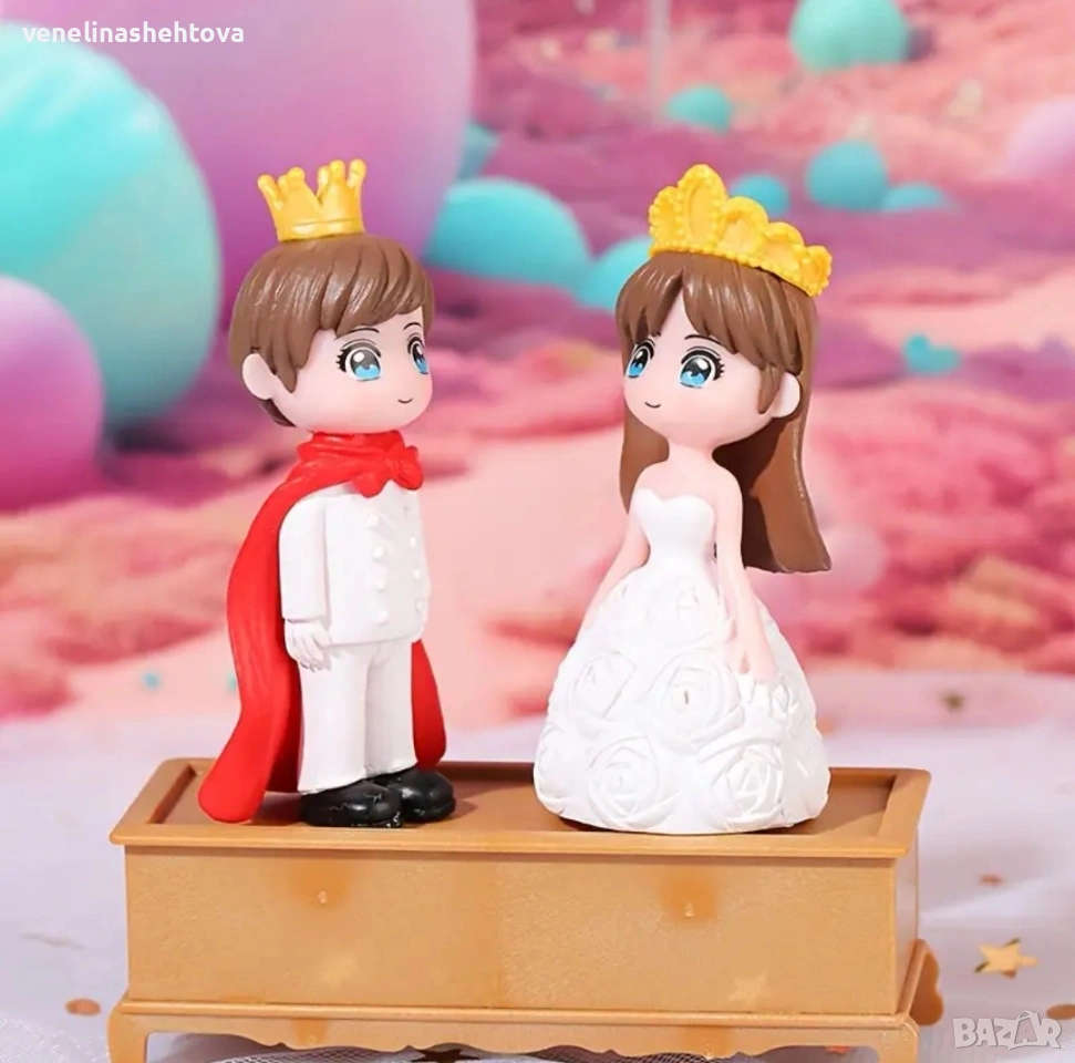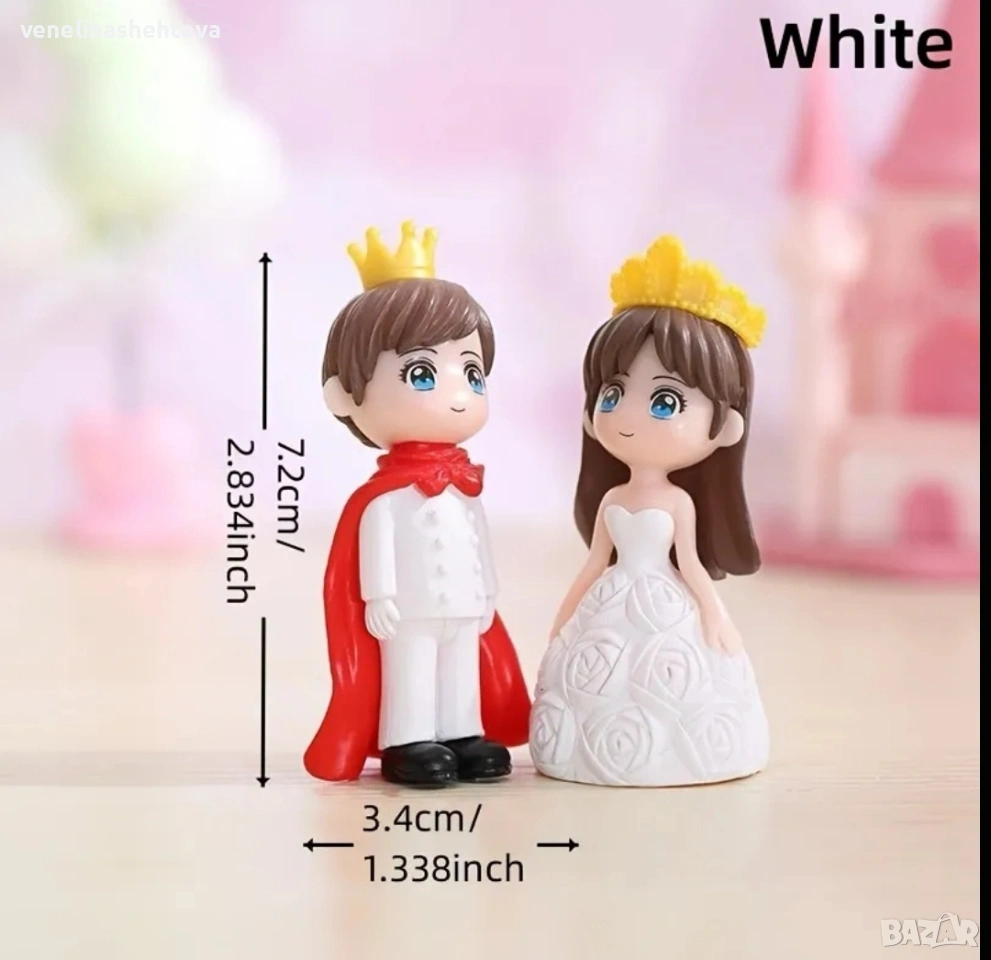Фигурки принц и принцеса с корона в бяло декорация на торта парти влюбени → Обява 53938090