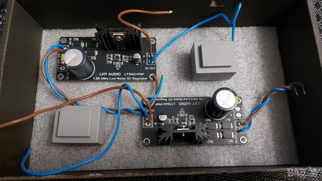 2 броя нови LHY AUDIO Low Noise DC Regulator 5volt output с две трафчета към тях! Вижте снимките!