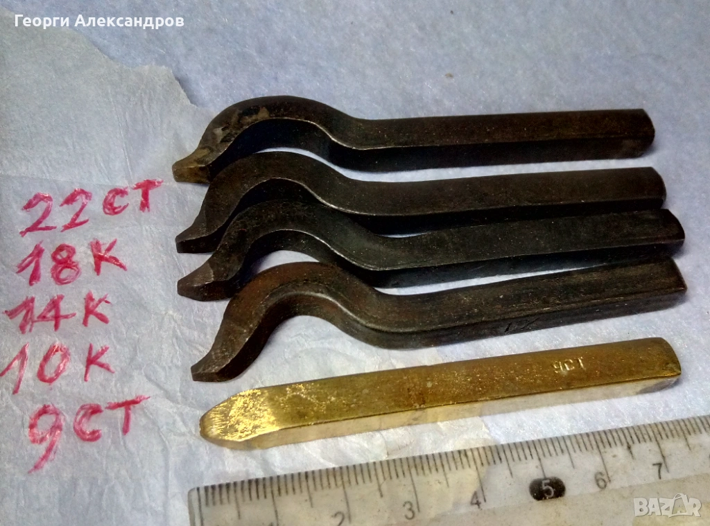 Комплект 5 Стари Златарски Инструмента Пунсон за Маркиране на ЗЛАТО 9 10 14 18 и 22 Карата → Обява 53938329