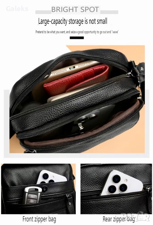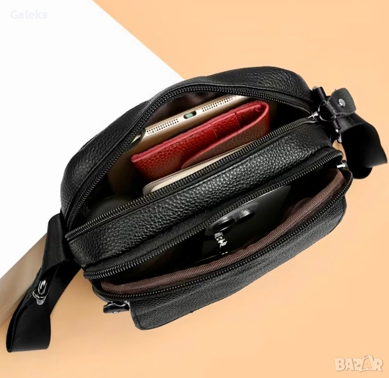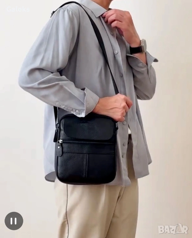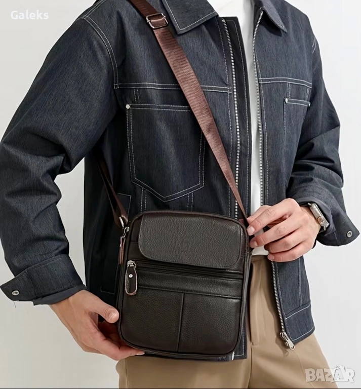 Мъжка елитна и функционална дисплей чантичка (Премиум естествена кожа) за през рамо с ежедневна насоченост и практичност!!