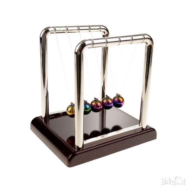 Люлката на Нютон е не само красива декорация, но и перфектен антистрес аксесоар. Нежното движение на металните топчета създава усещане за спокойствие и баланс.