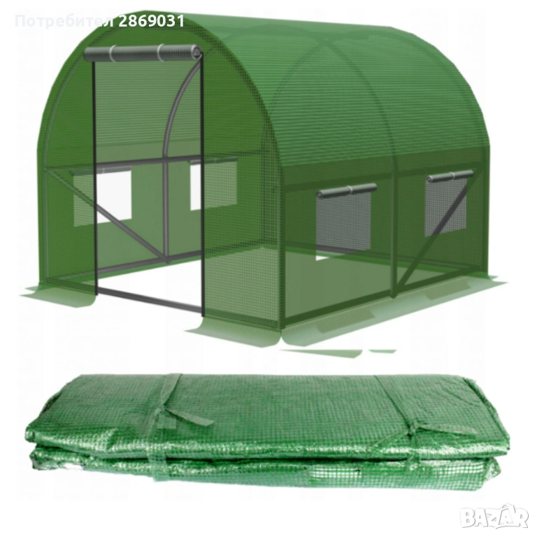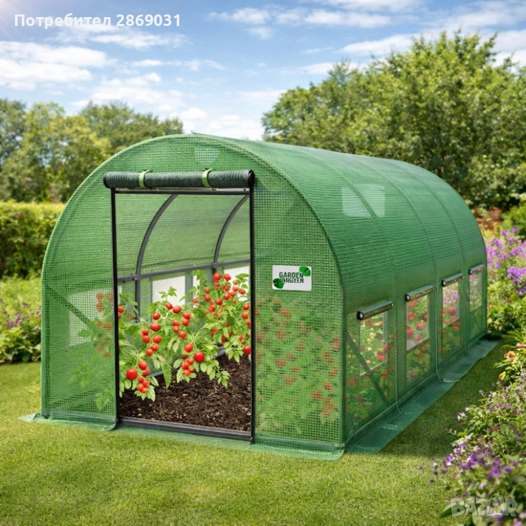 Разполага с прозорци с мрежа против насекоми и ролетна врата с цип за удобен достъп и добра вентилация. Подходящо за различни размери градински тунели и лесно за самостоятелен монтаж.