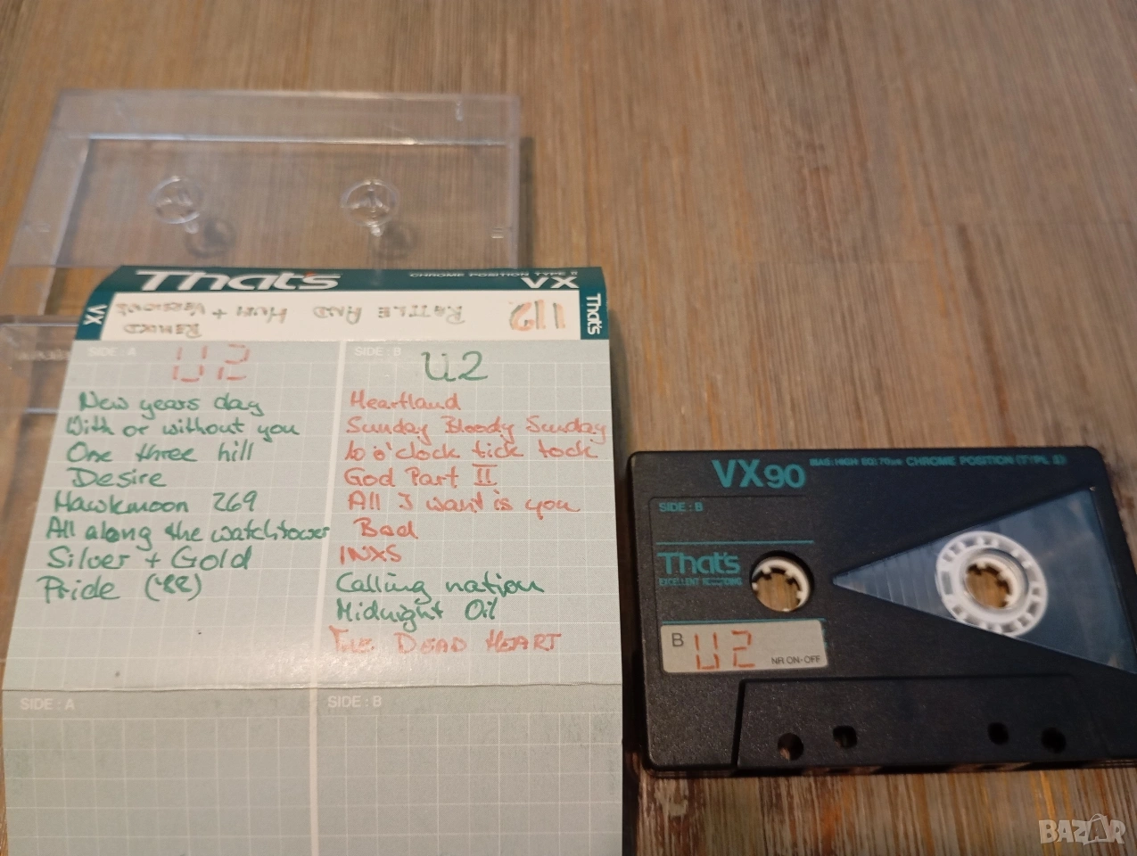 Лот 2бр аудио касети That's VX90 хромни ленти. Интересни! За не чак толкова претенциозни колекционери и аудиофили 😎 Едната е с албуми на U2. Другата е без оргинална си обложка и кутийка. Единична цена - 16,00 Евро/бр. Със здрави крачета. Цена за лота от 2 бр - 29,00 Евро/бр. За колекция или презапис. Hou Basf, Agfa, TDK, Sony, Maxell, That's, Fuji, Raks, Emtec, Pioneer, Technics, Aiwa, Nakamichi, Teac, Revox, Sanyo, Sharp, JVC, Hitachi