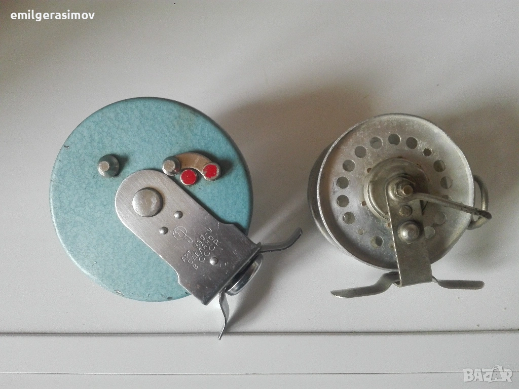 2. Две руски риболовни макари (Катушки). Работят и двете. Мисля че по-големата не е ползвана. Диаметрите на макарите са съответно 75 и 95 мм. Цена 8 евро за по-малката и 10 евро за по-малката.