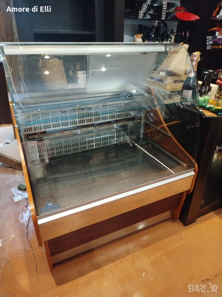 Продавам висок клас хладилна сладкарска витрина от доказания български производител „Братя Чичеклиеви“. Витрината е в отлично състояние, проектирана за професионална употреба с акцент върху хигиената и перфектната презентация.