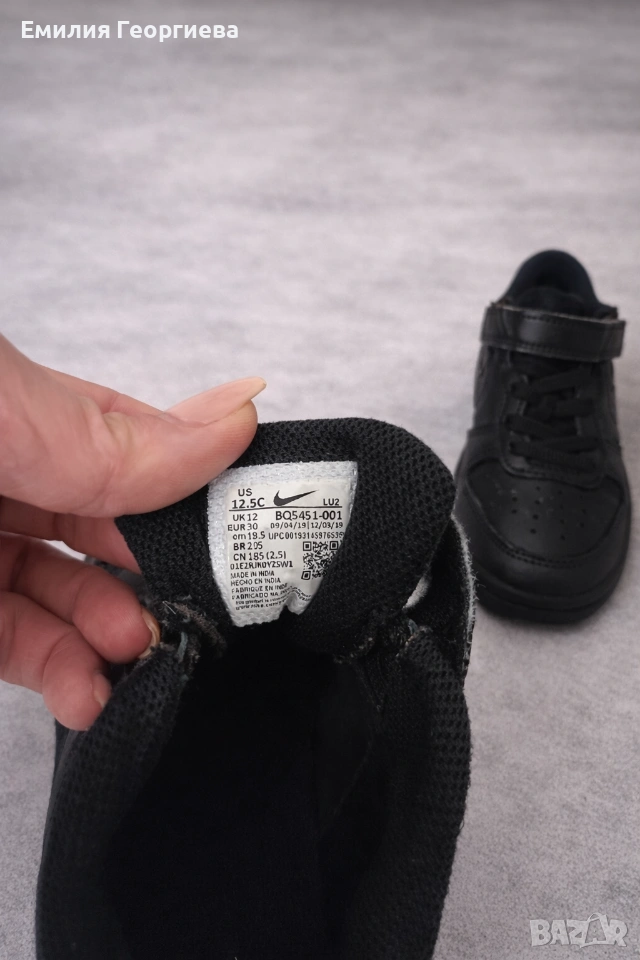 Продавам оригинални детски маратонки Nike в черен цвят. Подходящи както за момче, така и за момиче – изчистен и практичен модел.