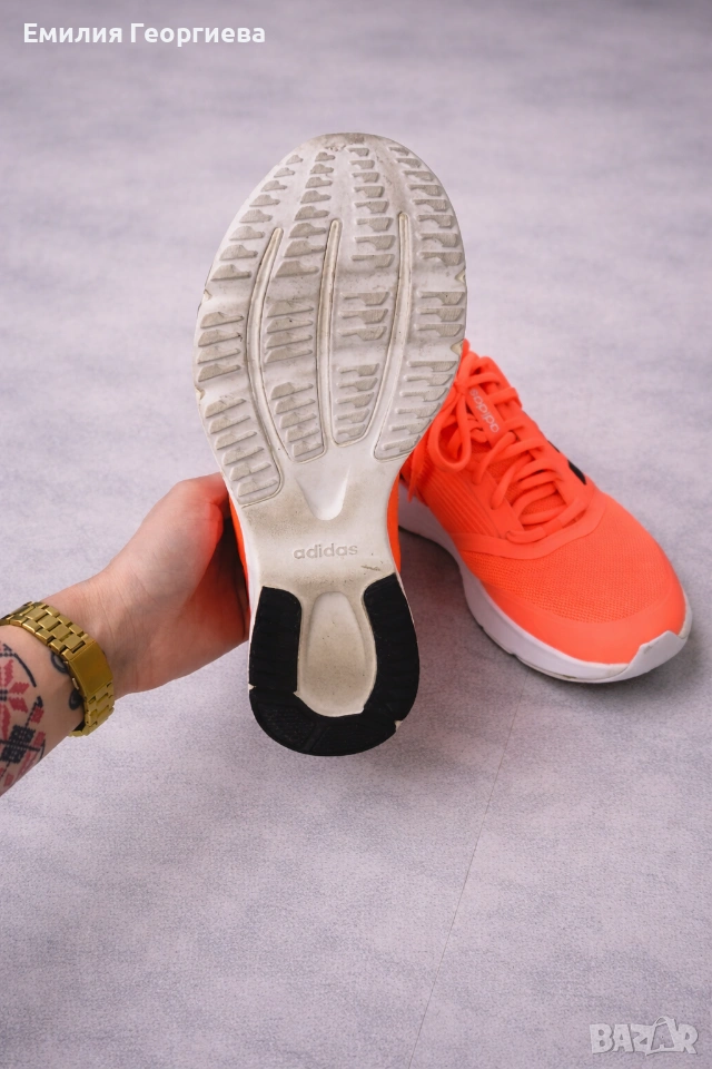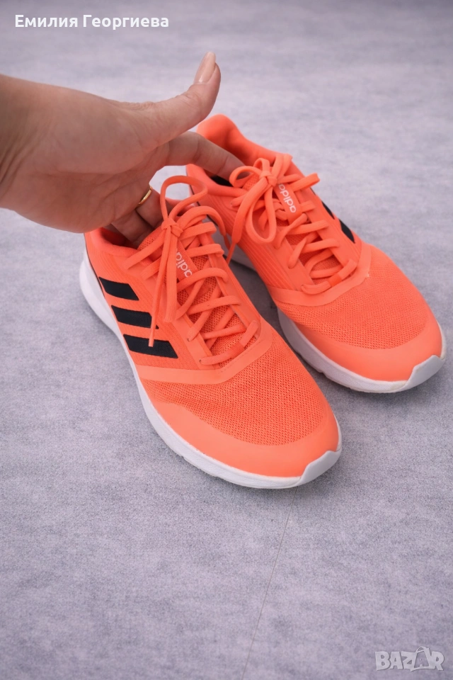 Продавам оригинални маратонки Adidas в свеж неоново-оранжев цвят – изключително удобни, леки и подходящи за спорт или ежедневно носене.