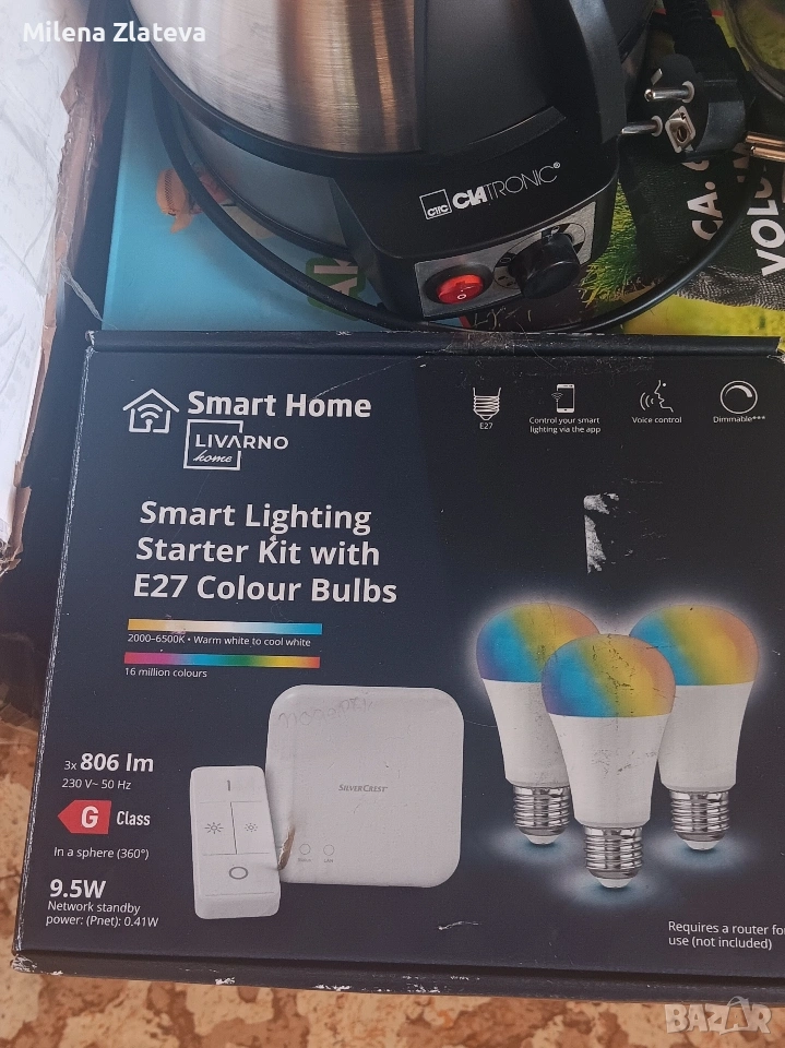 За всекиго по нещо!!!КОМПЛЕКТ ЗА УМНО ОСВЕТЛЕНИЕ Livarno Home. 3 лед крушки /Е27/,шлюз /gateway/ и дистанционно управление.Управлява се чрез приложение и гласови команди.Регулируема цветова температура от топло до студено бяло и 16мил. цвята. На ТОП цена 15€. Вайбърчето за вашите поръчки е 08******49 или пишете на ЛС. Последвайте ме за още интересни предложения!!!
