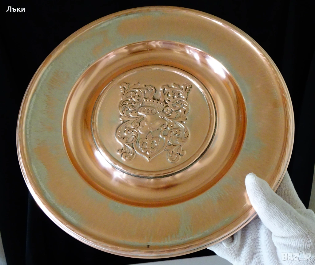 Стара медна чиния за стена,пано,майсторска ръчна изработка