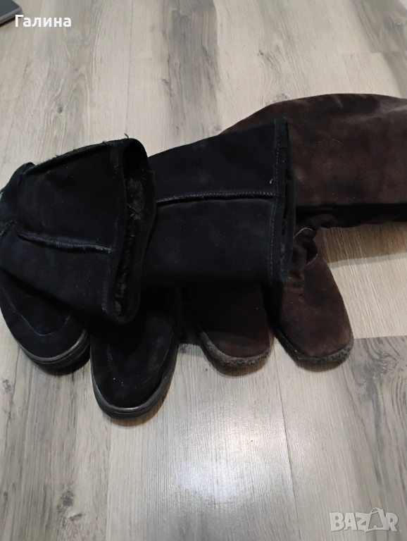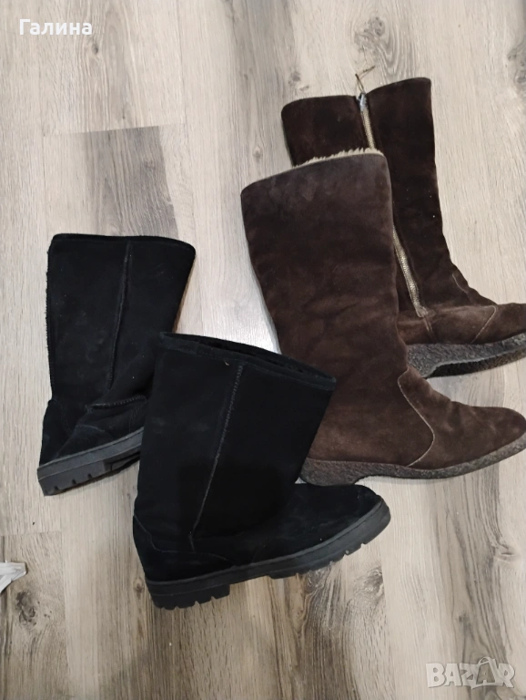 Дебела много качествена кожа,велур. С дебела подплата. В много добро състояние. Цената е за двата чифта.