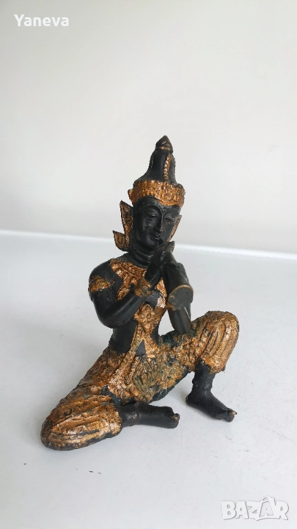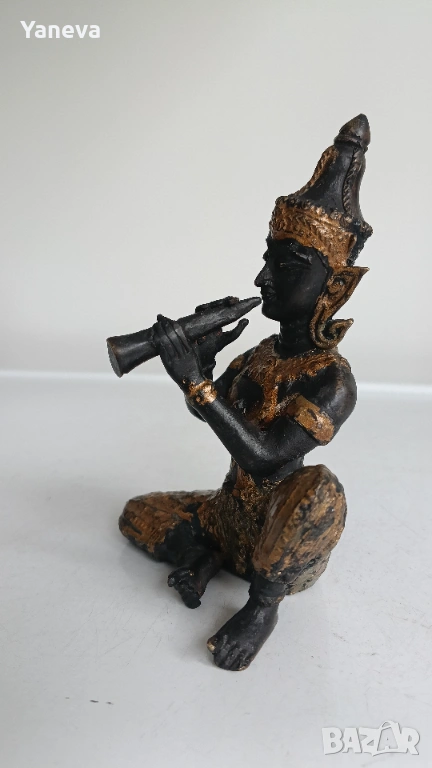 Бронзова , тайландска статуетка на ангел пазител с флейта. Той е небесно същество , които поздравява Буда при постигането на просветление. Размер 13 см. Цена 60 евро.