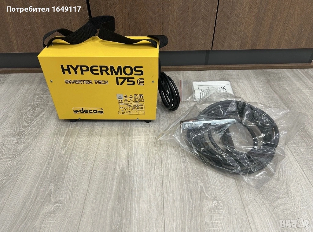 Продавам чисто нов професионален, инверторен електрожен DECA Hypermos 175e[made in Italy]. Реални 160А, работи с електроди от 1.6 до 4mm. Към него има комплект кабели[маса и ръкохватка] с дължина по 3м, и сечениние 25mm2.