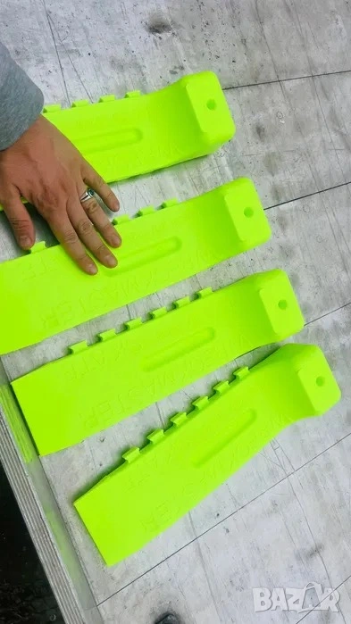 Продавам Slippery Jims – плъзгащи плочи за автомобилни колела, предназначени за лесно придвижване и товарене на автомобили с блокирали, повредени или липсващи колела.