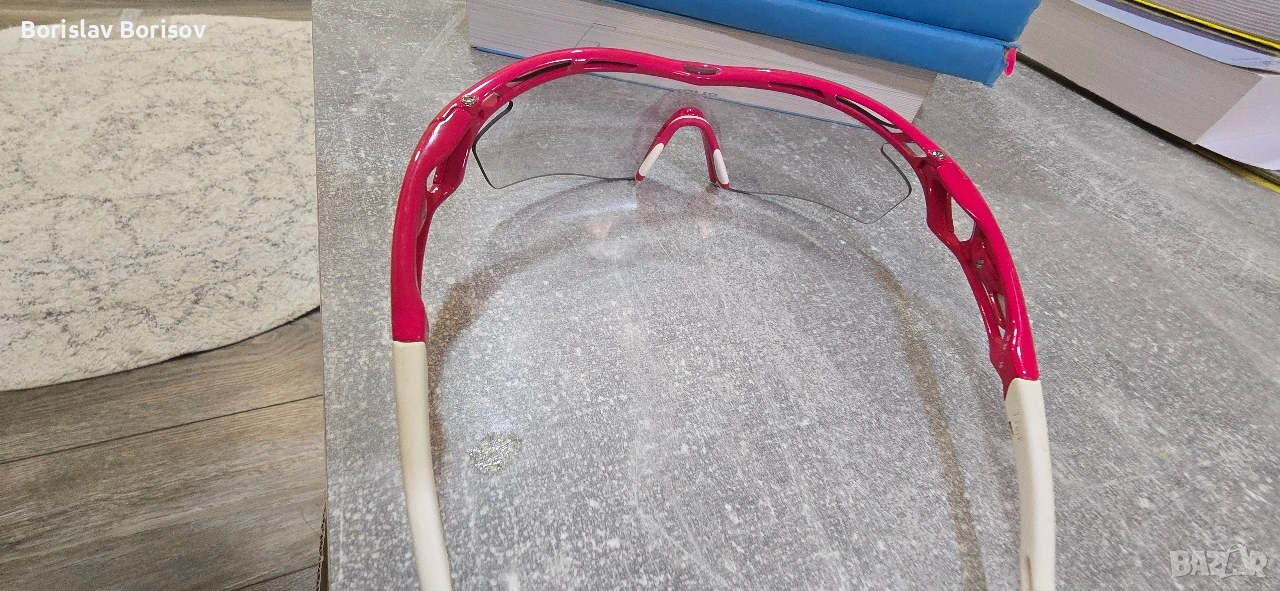 Спортни очила Rudy Project Tralyx в розово -червен цвят. Използвани са, но в отлично състояние без забележки. Подходящи за спорт и активности на открито,.колоездене туризъм.