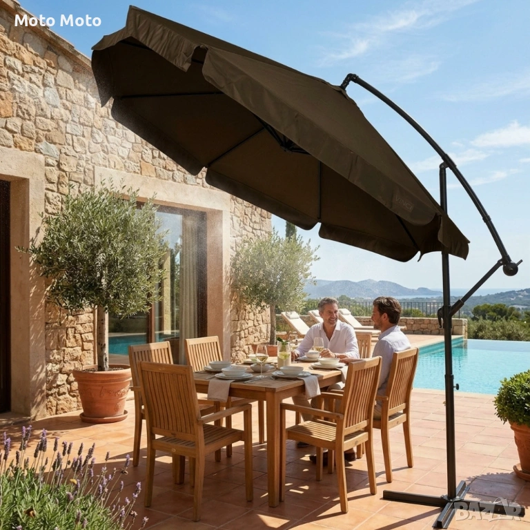 Голям градински чадър със странична стойка, Ø 350 см, UV защита, Водоустойчив + Покривало