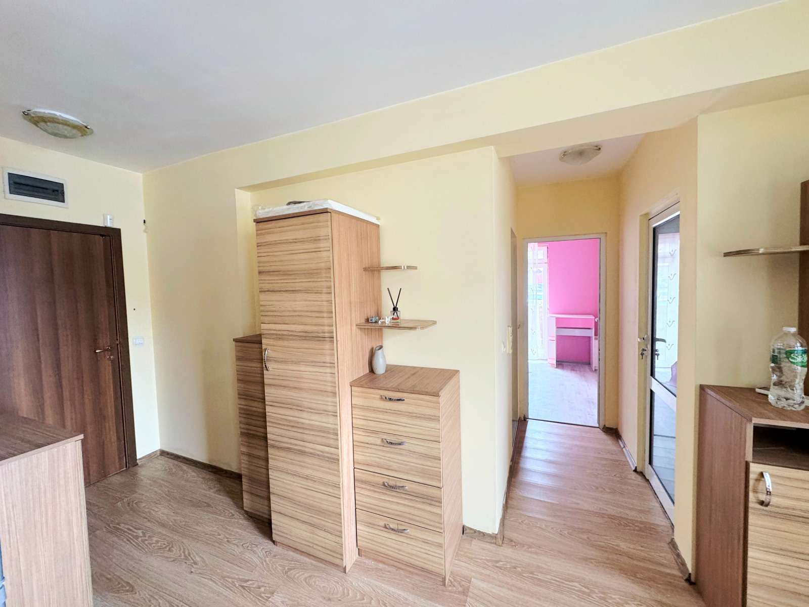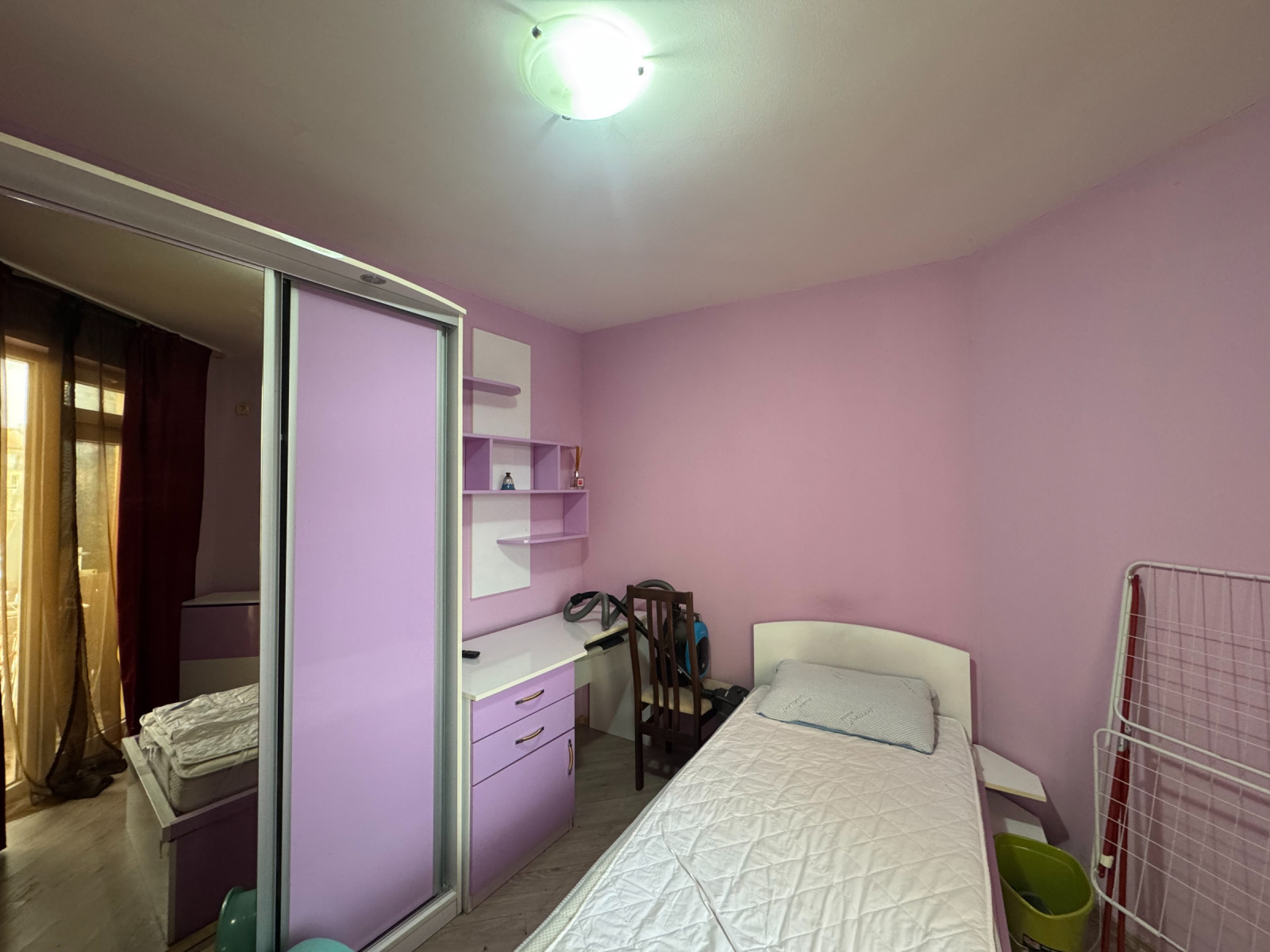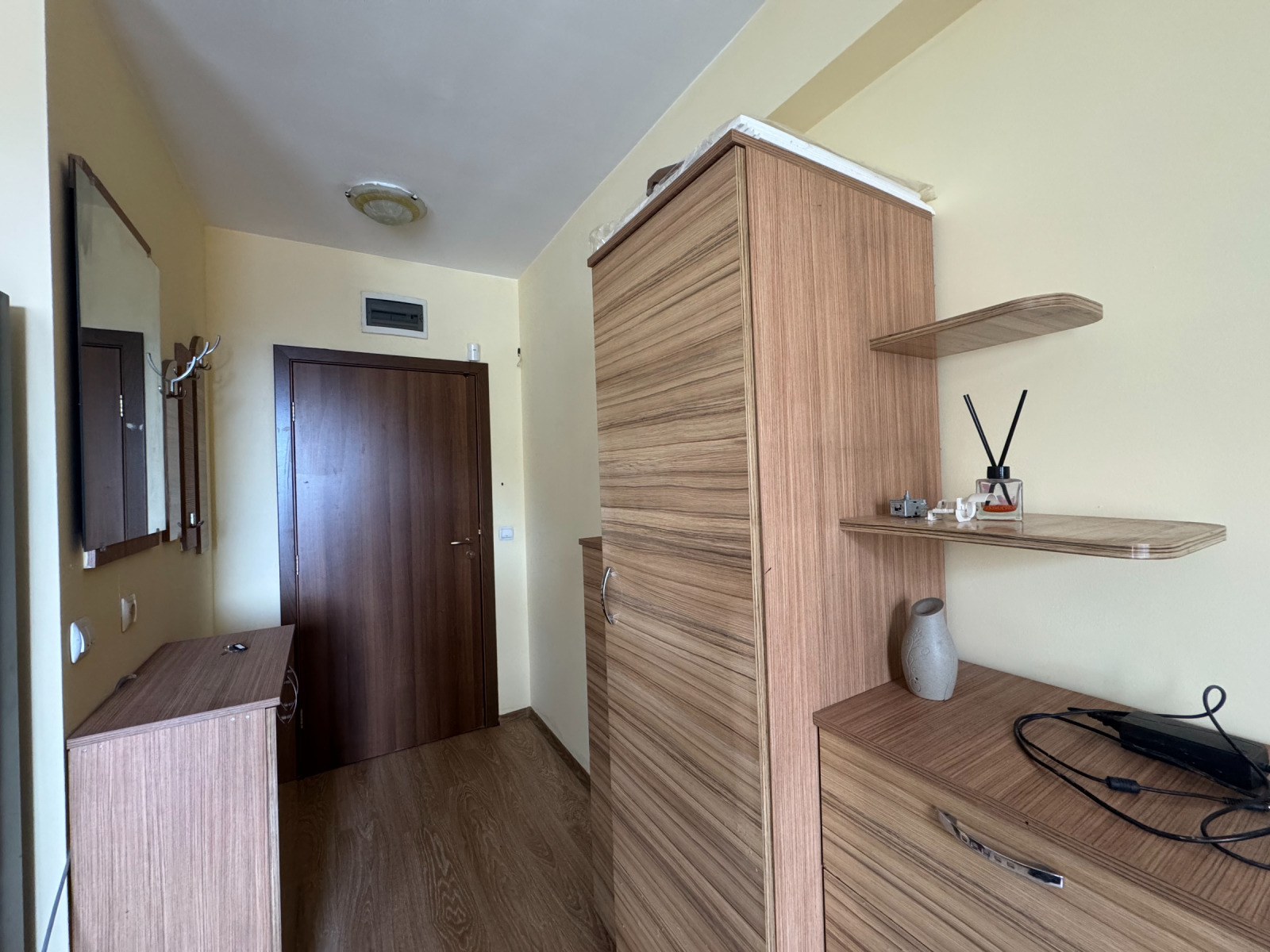 Жилището се състои от антре, всекидневна с кухненски бокс, две спални, баня с тоалетна и два балкона. Апартаментът се отдава напълно обзаведен и готов за нанасяне, което го прави отличен избор както за семейство, така и за хора, търсещи спокойствие и комфорт близо до столицата.