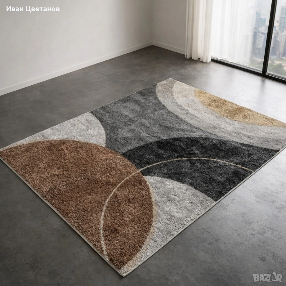 Размер: 120 х 160 см — оптимален за холни зони и четни пространства.