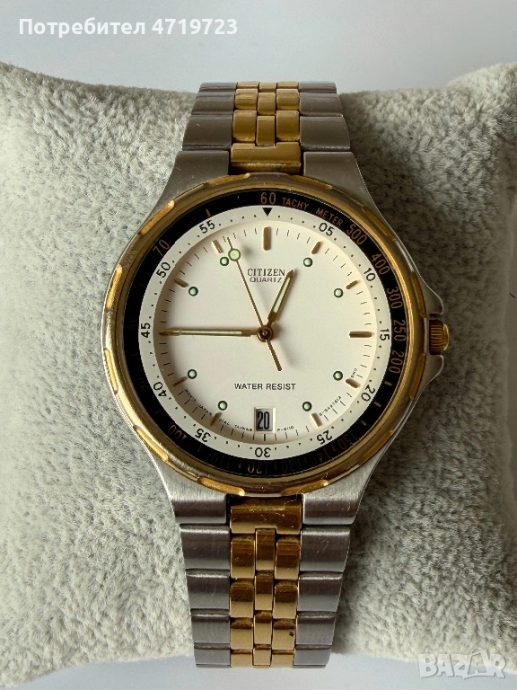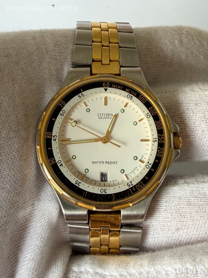 Citizen 6110-S15648 Vintage в отлично състояние, работи коректно. Класически двуцветен модел с тахиметрична скала и винтидж дизайн.