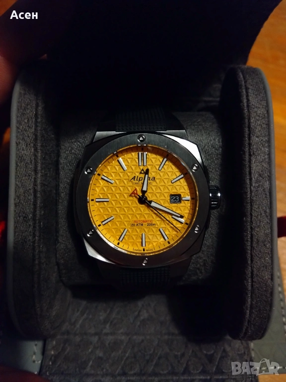 Продавам чисто нов часовник Alpina Alpiner Extreme Automatic Limited Edition 50 AL-525Y4AE6. Часовникът е пълен комплект с всички кутии, карти и етикет. Гаранцията е към онлайн магазин в Англия, като при покупка ще приложа копие от електронния документ с който е купен. Остава му повече от година и половина гаранция - купен е октомври месец 2025г.