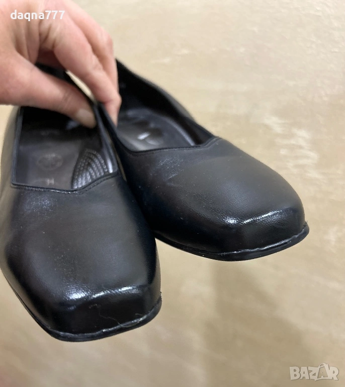 Дизайн: Класическа черна обувка тип „пантoфка“, или нисък ток с разтеглива горна линия за по-добро прилягане.