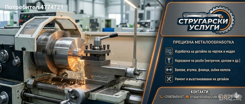 Предлагам прецизна стругарскаработа по поръчка за физически лица, фермери, механици и фирми.