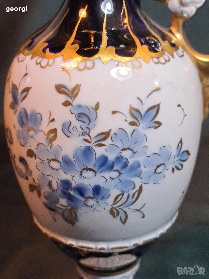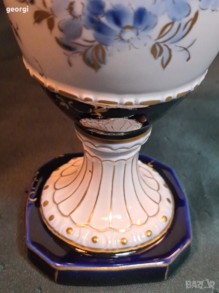 порцеланова ваза амфора Royal Dux кобалт с позлата → Обява 53941491